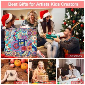 O livro para colorir com páginas pretas amplia as possibilidades de efeitos com cores claras e metálicas. O conjunto é recomendado para uso adulto, atendendo artistas em diferentes níveis de experiência que trabalham com ilustração, mandalas e desenhos detalhados.