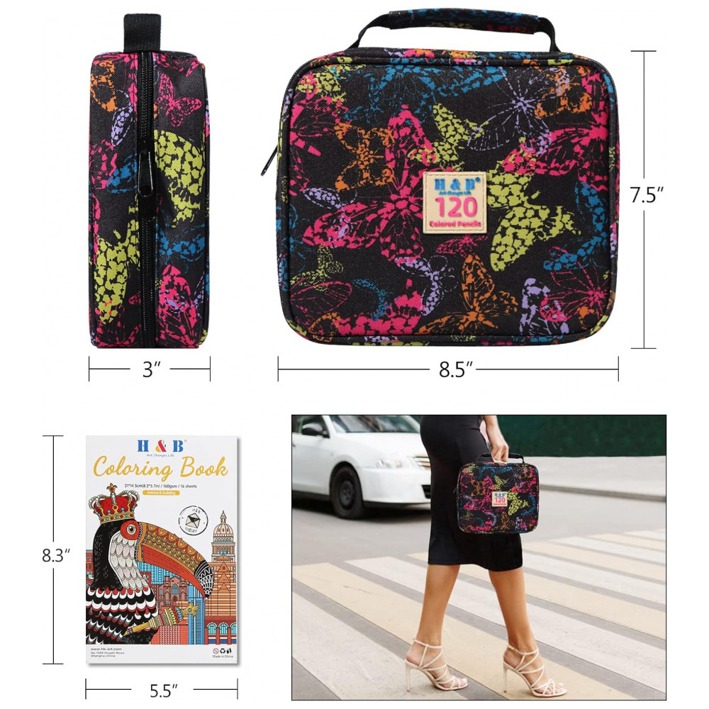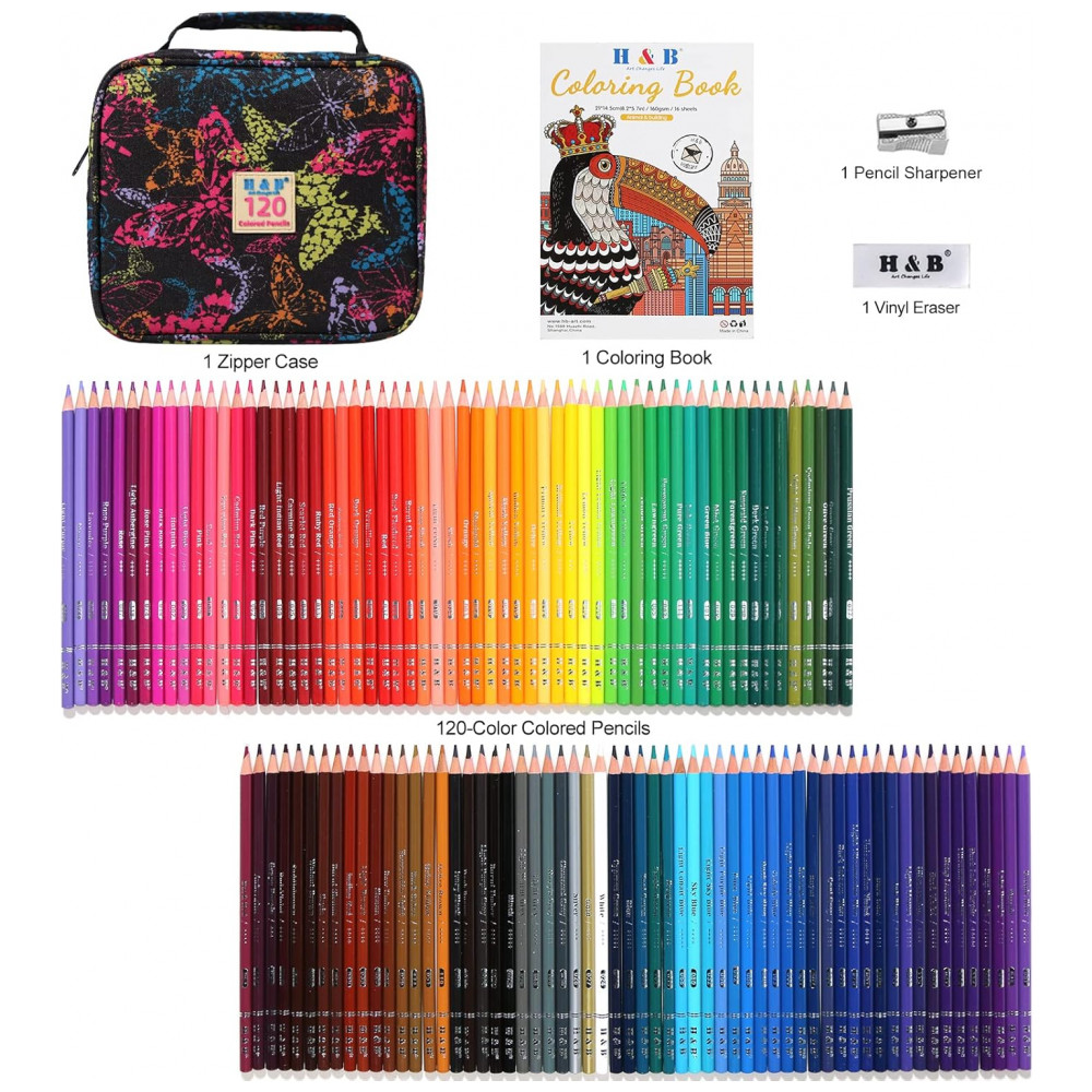 Conjunto 120 lápis de cor H & B com livro para colorir borracha e apontador minas óleo macias para desenho e pintura