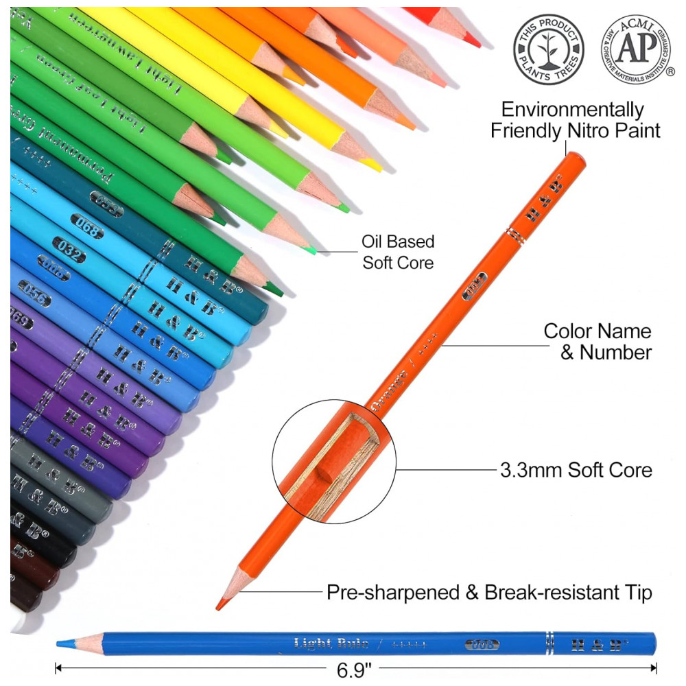 Este conjunto H & B reúne 120 lápis de cor com minas à base de óleo, acompanhados de borracha, apontador e livro para colorir, indicado para uso adulto em desenho e coloração. As minas foram formuladas para equilíbrio entre maciez e firmeza, oferecendo traço suave e boa resistência à quebra.