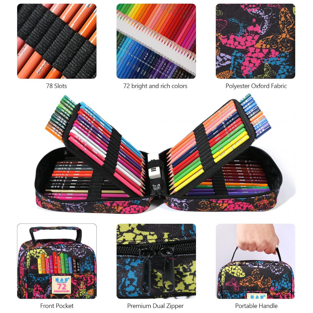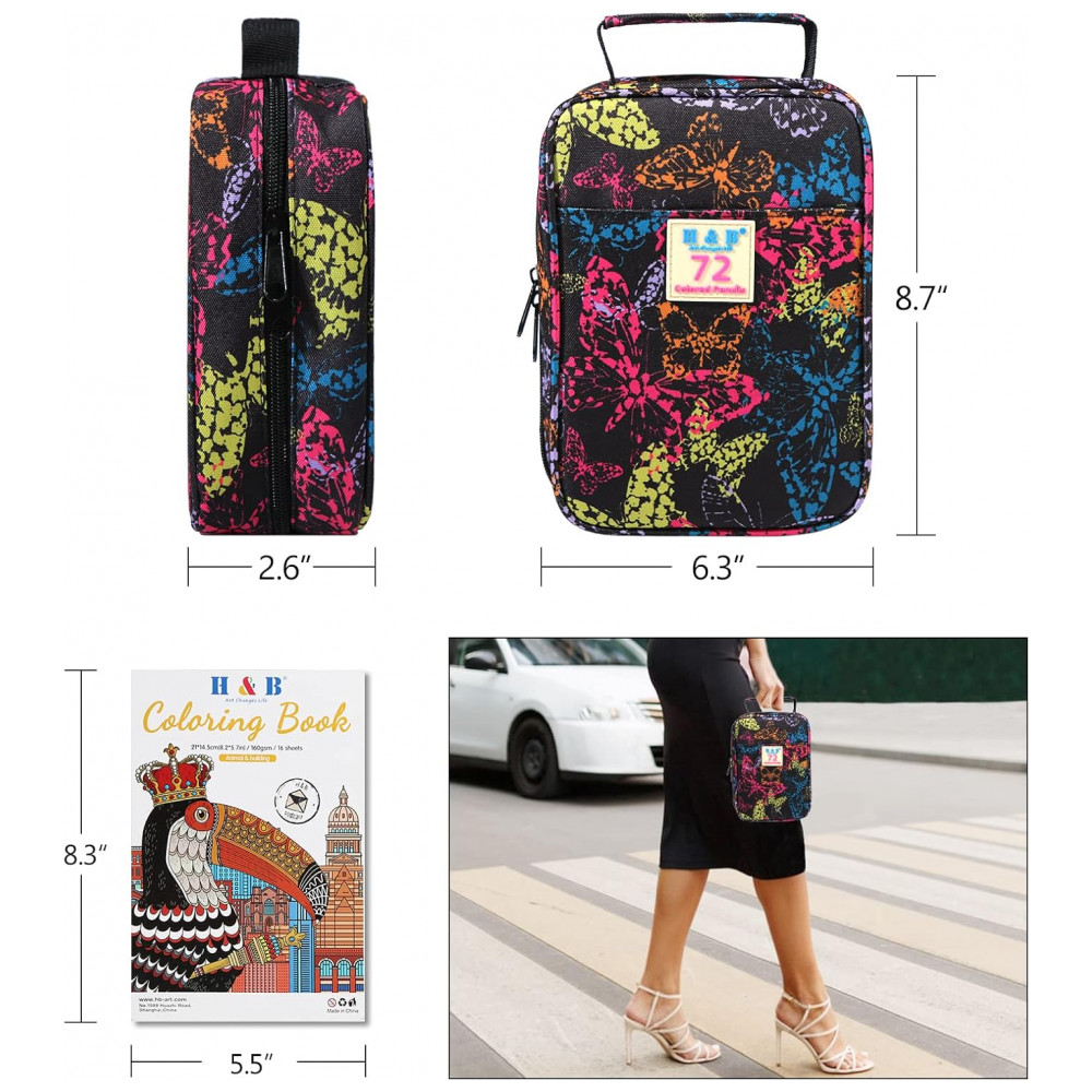 Conjunto 72 lápis de cor H & B com livro para colorir borracha e apontador minas óleo macias para desenho e pintura