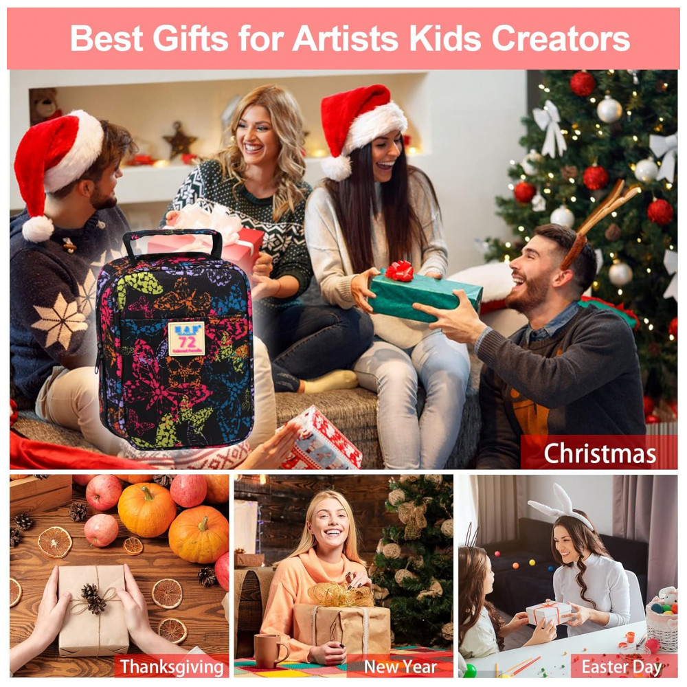 Os itens são acondicionados em embalagem com fechamento em zíper, permitindo armazenamento e transporte dos lápis e acessórios. O produto atende normas ASTM F‑963 e EN71‑3 para materiais artísticos, voltado a usuários jovens e adultos.