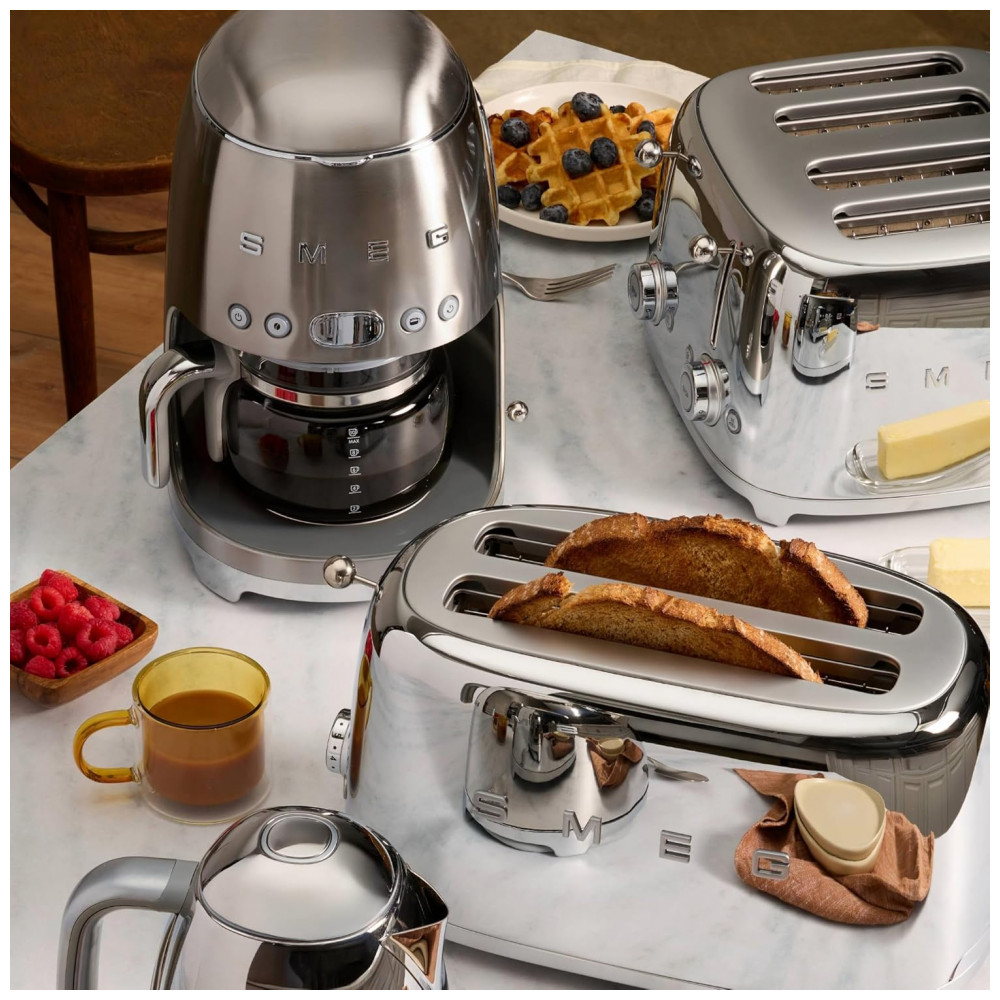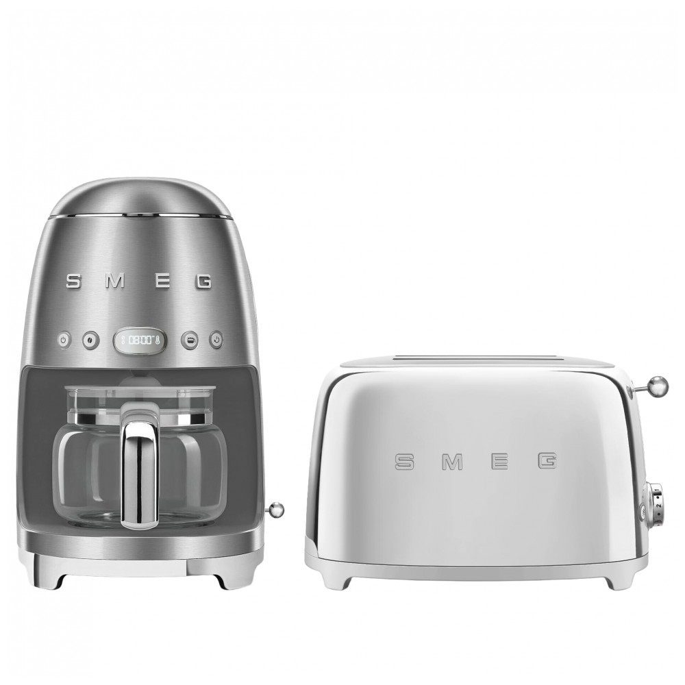 Conjunto Café da Manhã Smeg – Cafeteira Gotejamento 10 xícaras Programável + Torradeira 2 Fatias Inox Bundles TSF01 – 120V
