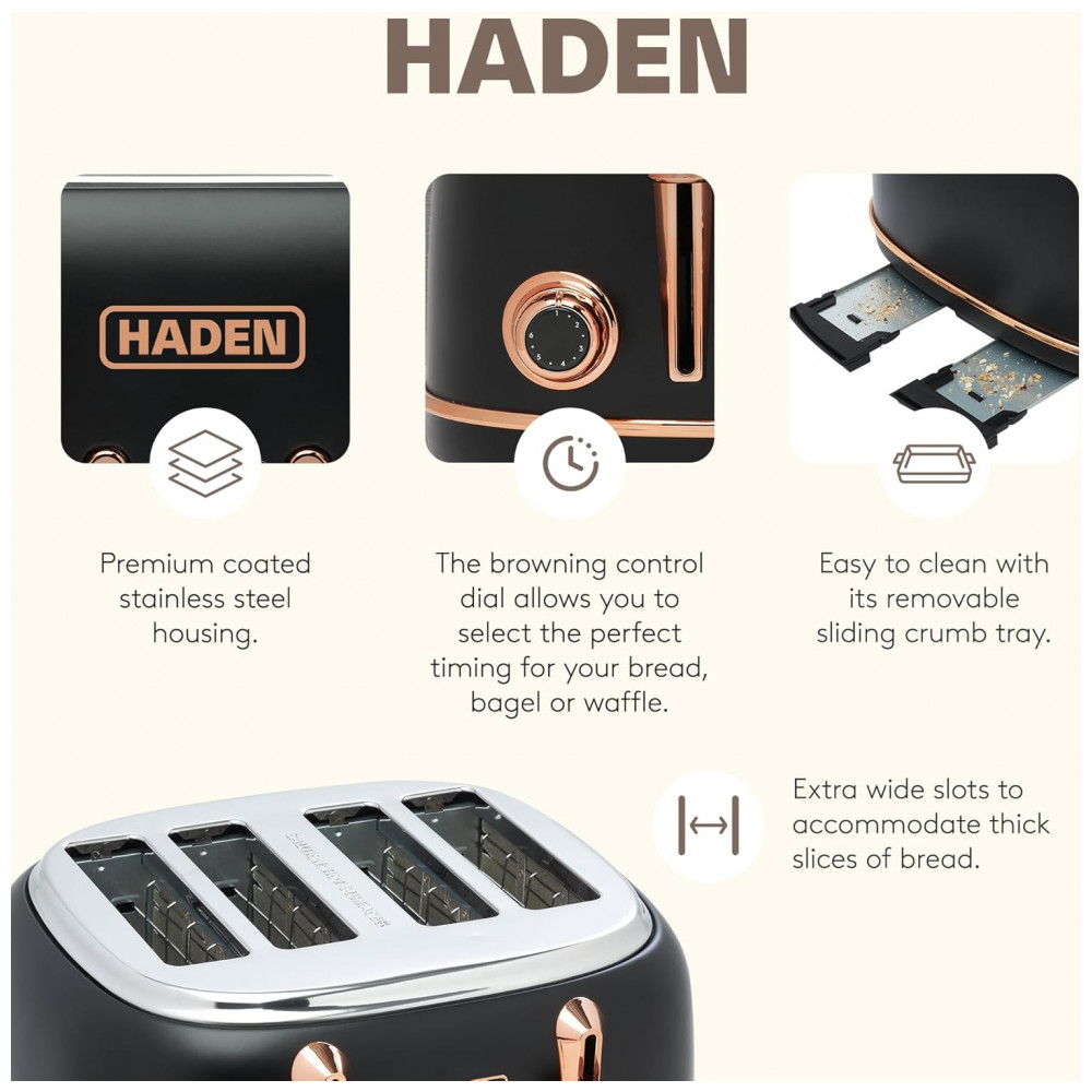Conjunto chaleira elétrica e torradeira HADEN Heritage inox preta e cobre 4 fatias 17L 110V
