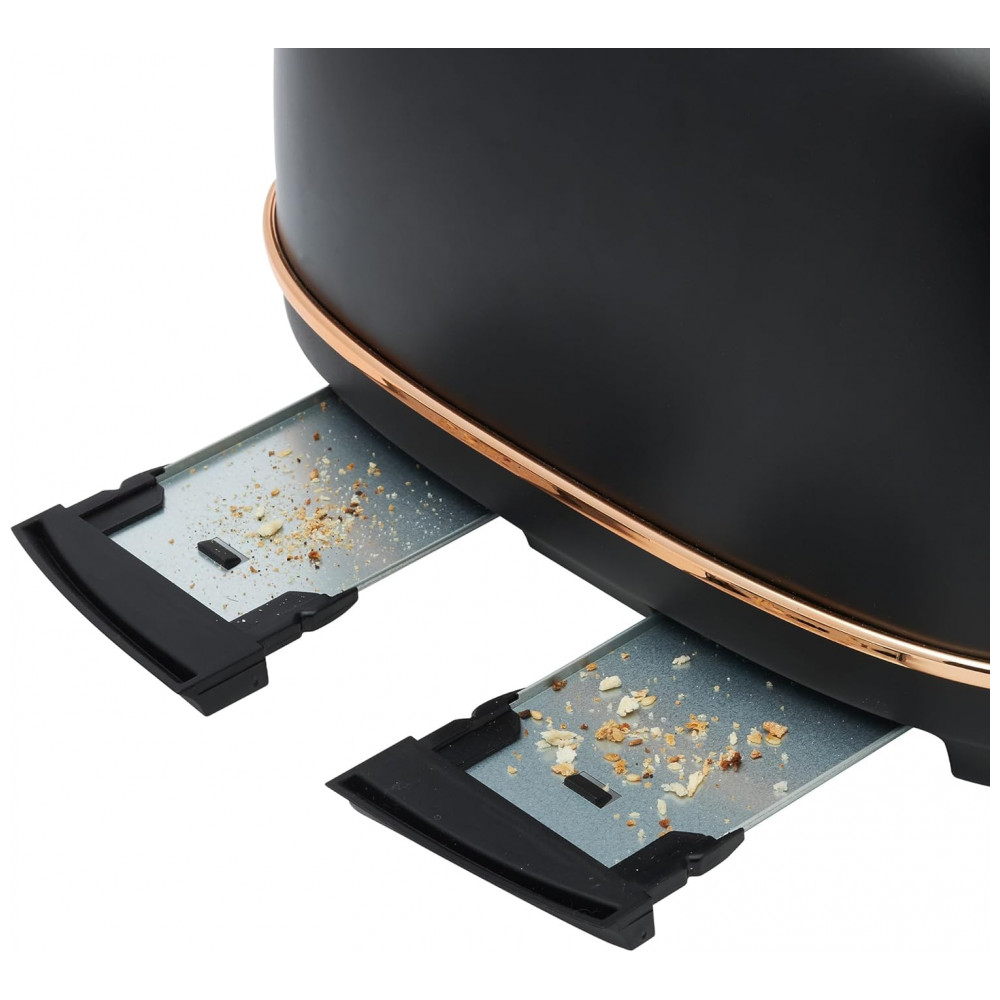 Itens inclusos: 1 chaleira elétrica 1,7L Heritage preta e cobre, 1 torradeira 4 fatias Heritage preta e cobre