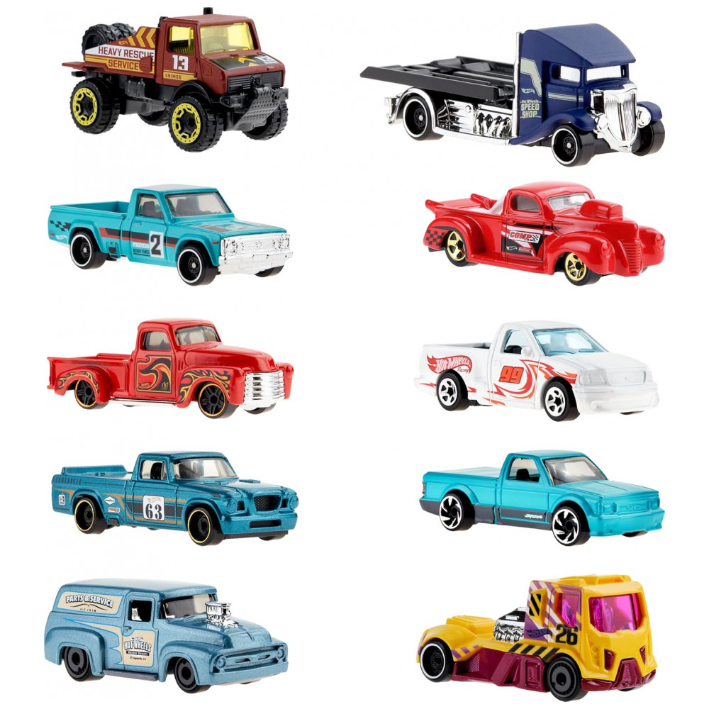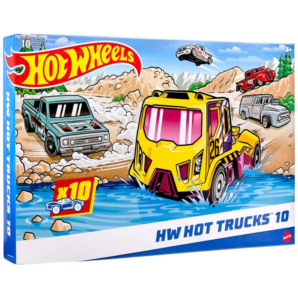 As crianças adoram veículos trabalhadores e este conjunto de 10 Caminhões Hot Wheels entrega todos os seus favoritos! Inclui versões em escala 1:64 de pickups e semis modernos e vintage, como Ford Pickup de 1940, Rennen Rig, F150 SVT Lightning de 1999, GMC Syclone de 1991 e Studebaker Champ de 1963. O conjunto é uma ótima maneira de iniciar uma coleção de caminhões favoritos das crianças ou expandir uma já existente. Cores e decorações podem variar. Transporte uma carga de diversão com este conjunto de 10 Caminhões Hot Wheels. Este incrível conjunto inclui caminhões icônicos em escala 1:64, como o MercedesBenz Unimog 1300, um FastBed Hauler, Mazda REPU, Ford F100 de 1956 e um Chevy de 1952. Dos semirreboques à pickups retrô, cada caminhão Hot Wheels inspira aventuras trabalhadoras em crianças a partir de 3 anos. Com decorações detalhadas e estilos autênticos, esses caminhões inspiram as crianças a explorar de forma independente, aprimorando suas habilidades de contar histórias criativas. O Conjunto de 10 Caminhões Hot Wheels é um ótimo presente para crianças e colecionadores.