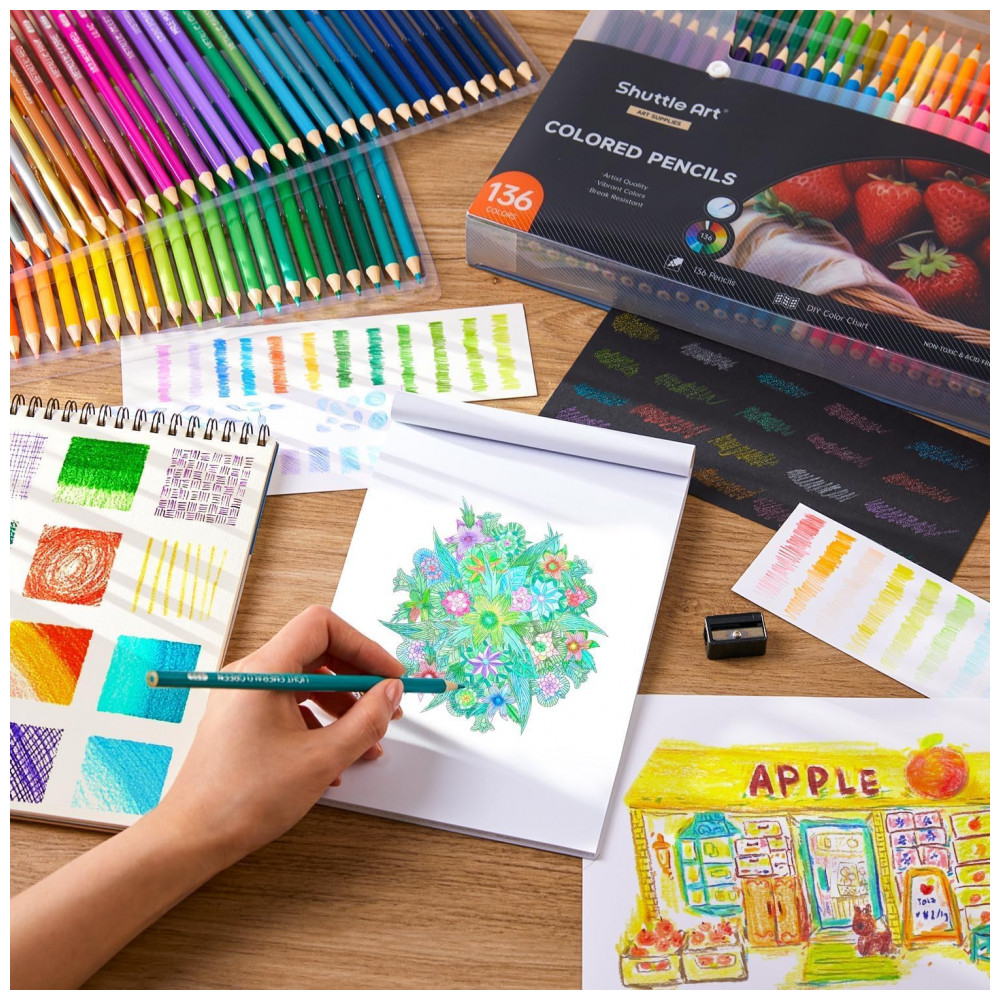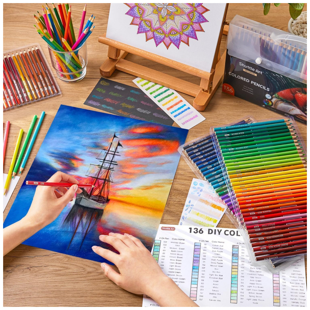 Conjunto de 136 lápis de cor Shuttle Art Cores Vibrantes Únicas Ideais para Livros de Colorir Adultos Esboços Desenhos e Material de Arte