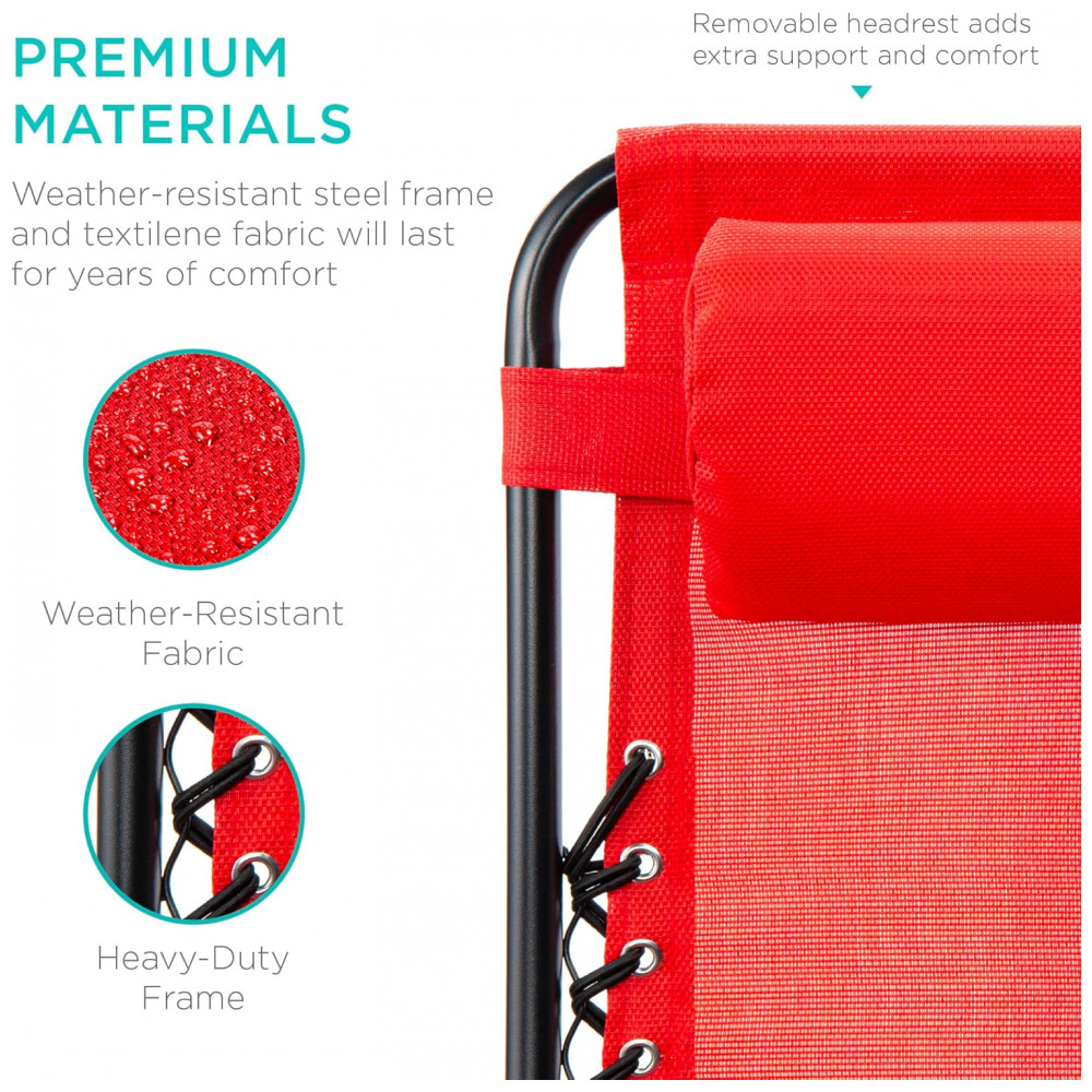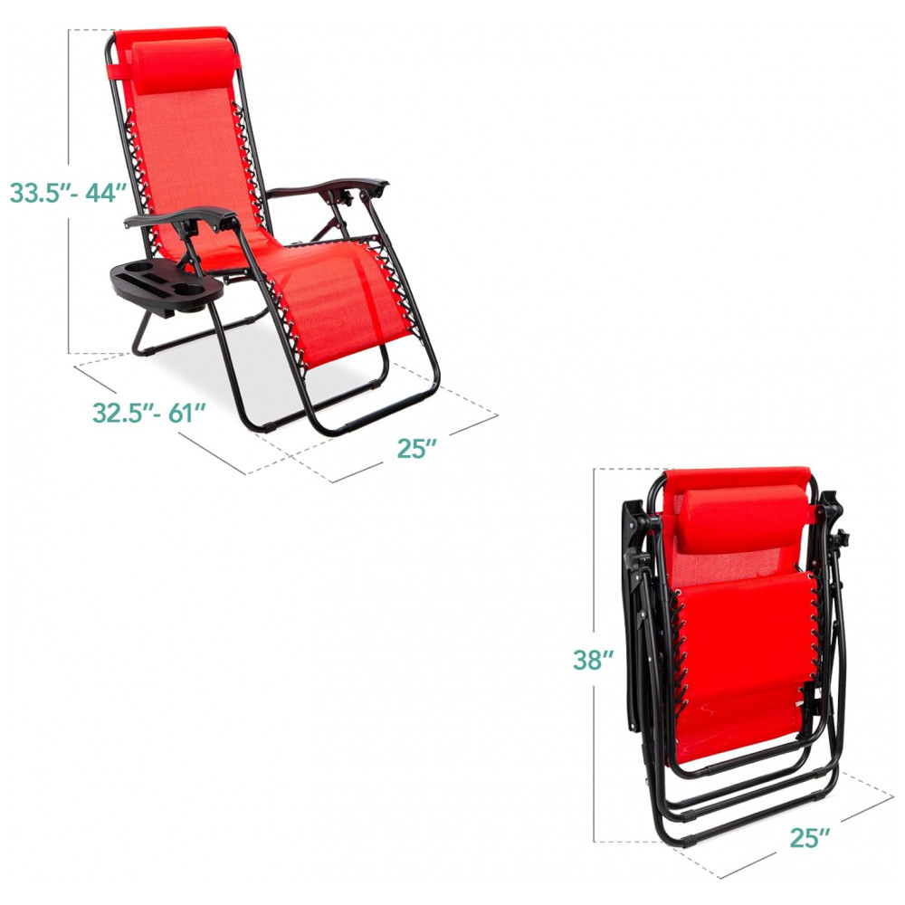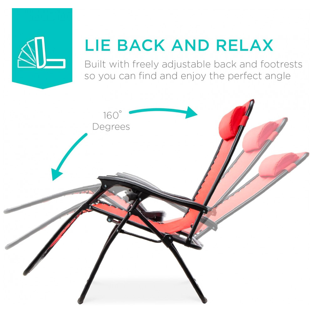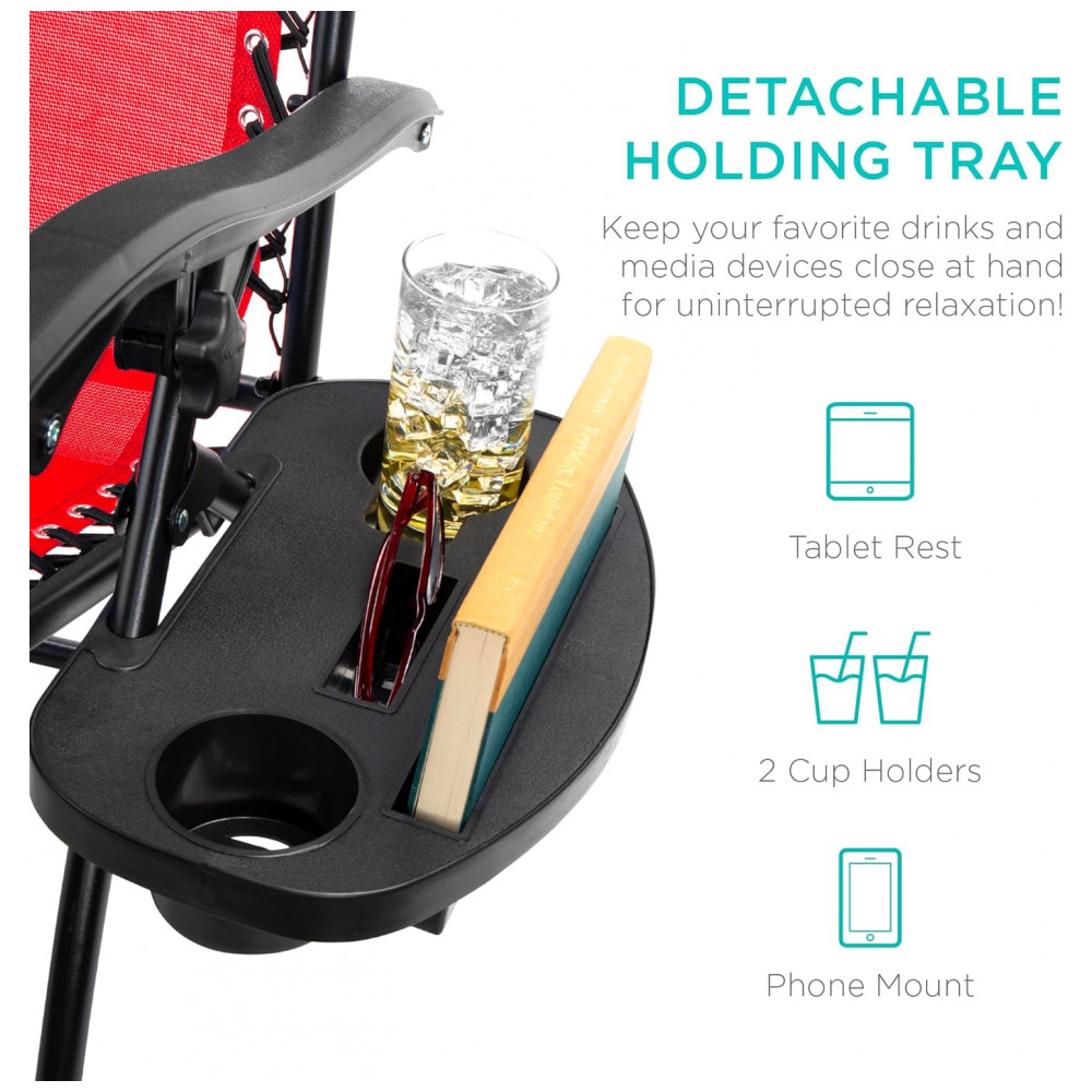 Conjunto de 2 Cadeiras de Praia Reclináveis de Aço com Design Ergonômico Zero Gravity e Bandejas de ApoioBest Choice Products