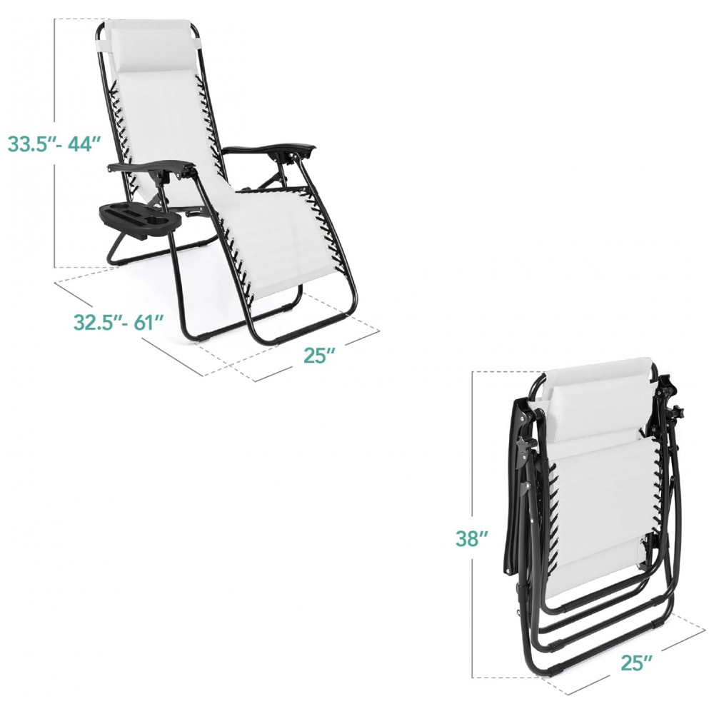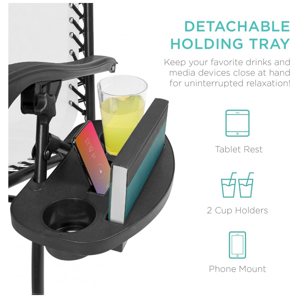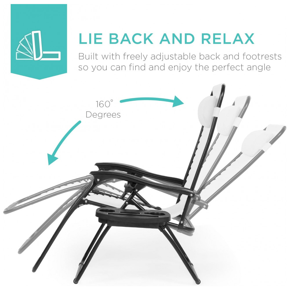 Conjunto de 2 Cadeiras de Praia Reclináveis de Malha de Aço da Best Choice Products com Bandejas para Copos