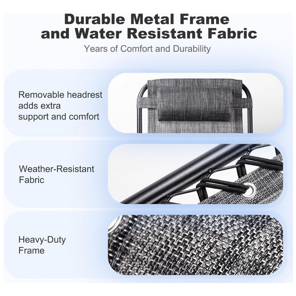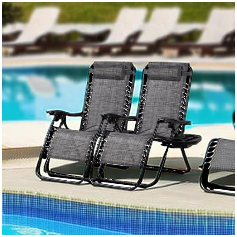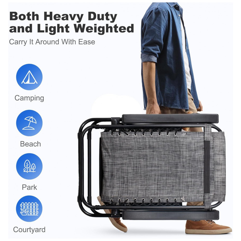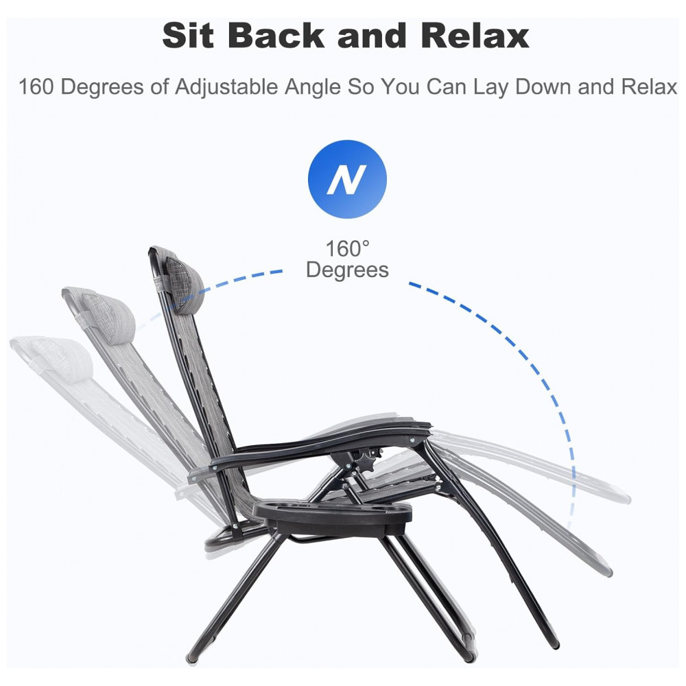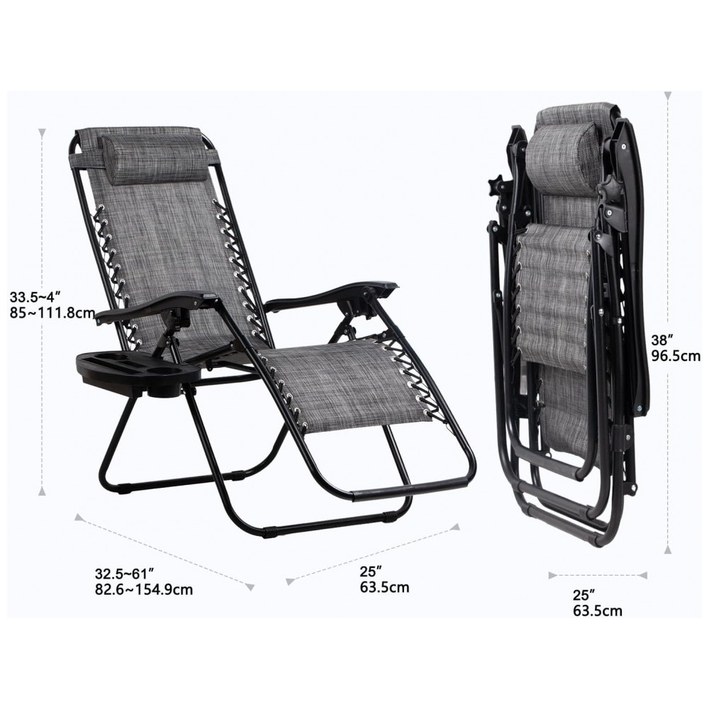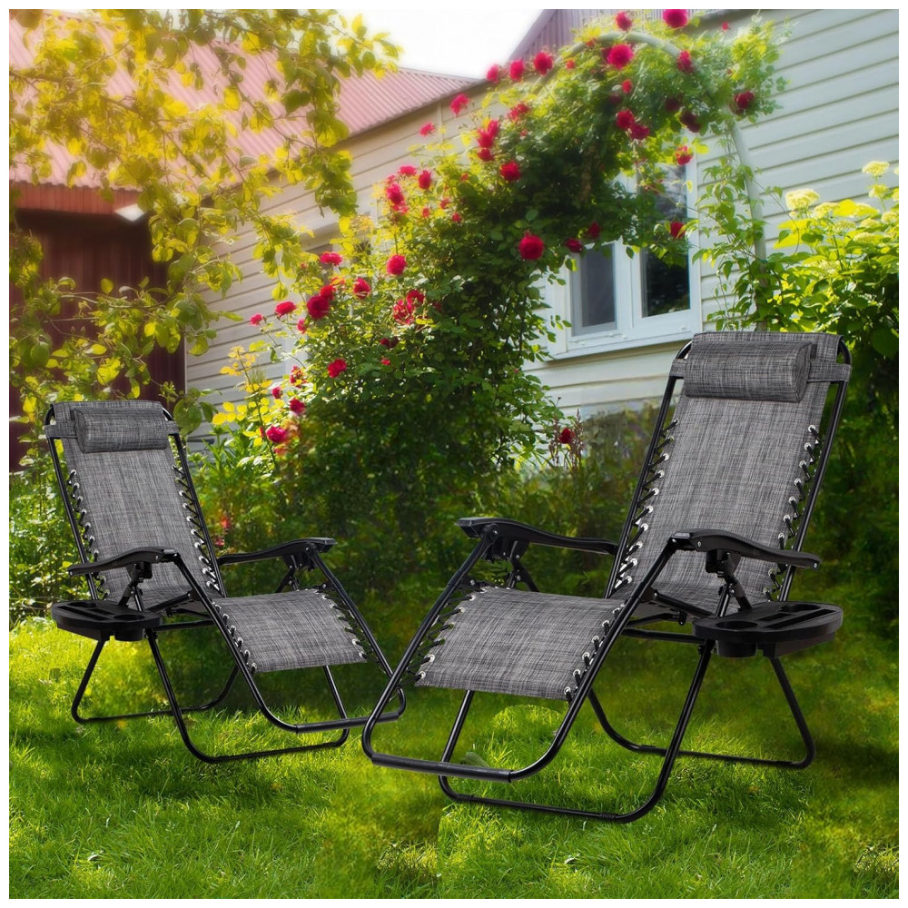 Conjunto de 2 Cadeiras de Praia Reclináveis Nazhura em Aço com Design de Malha Almofada e Porta-Copos – Cinza