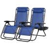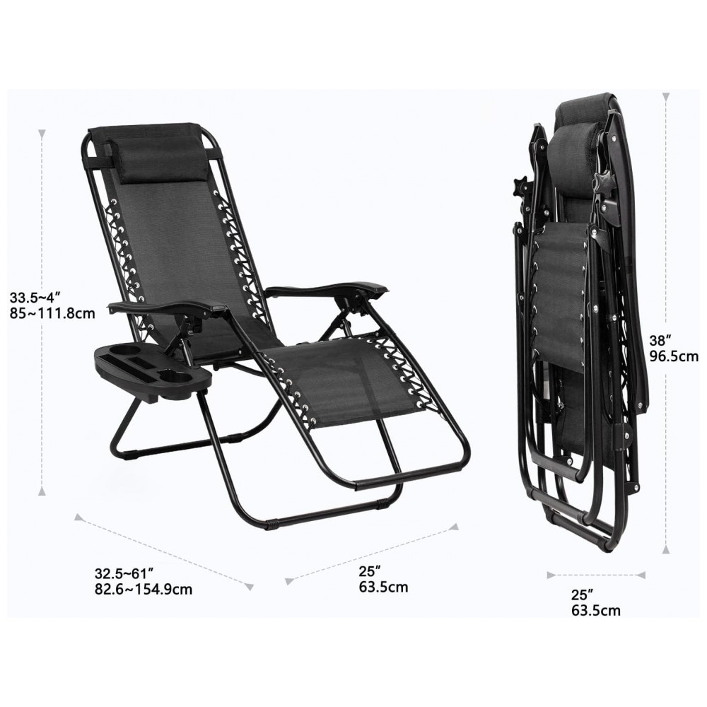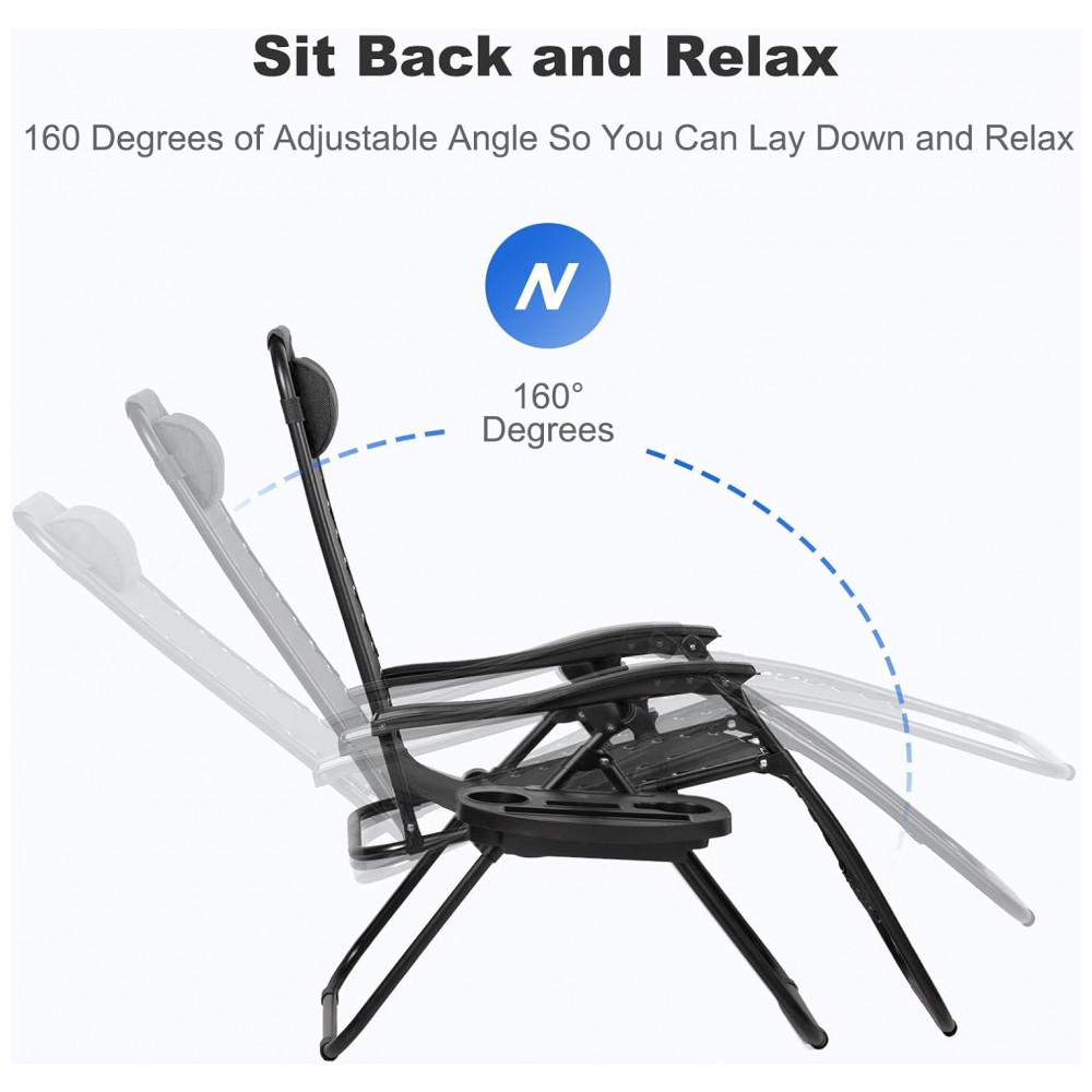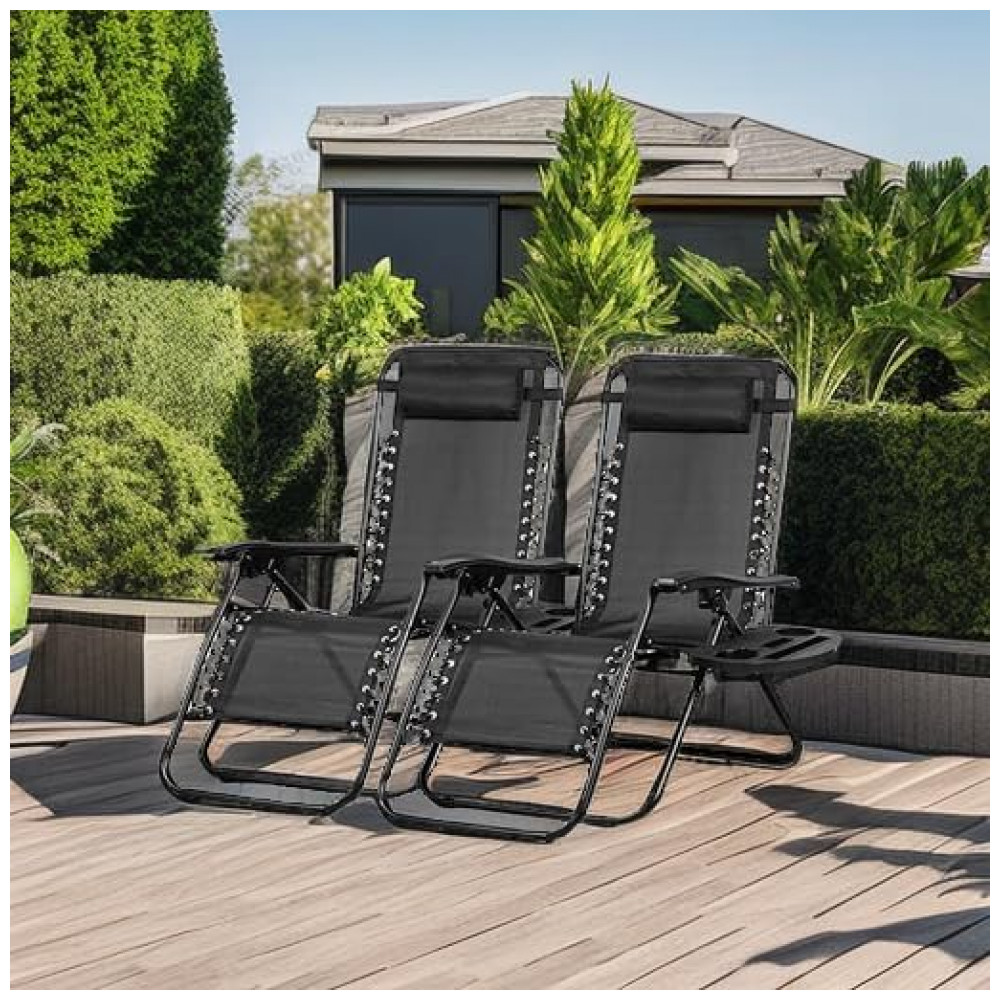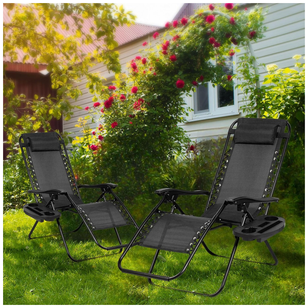 Conjunto de 2 Cadeiras de Praia Reclináveis Nazhura em Aço com Design de Malha de Aço Preta e Zero Gravity – com Almofada e Suporte para Copo