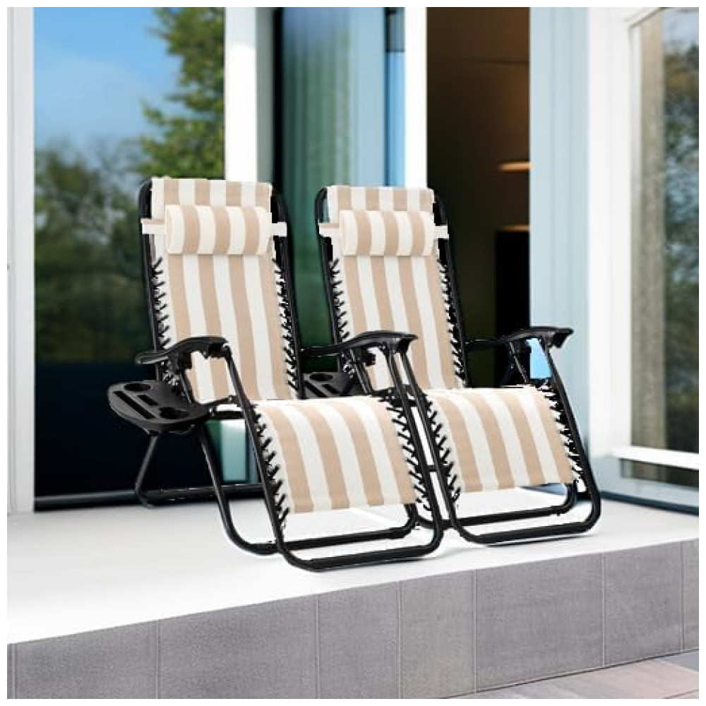 Conjunto de 2 Cadeiras Reclináveis de Aço com Sistema de Gravidade Zero e Bandejas Porta-CoposBest Choice Products