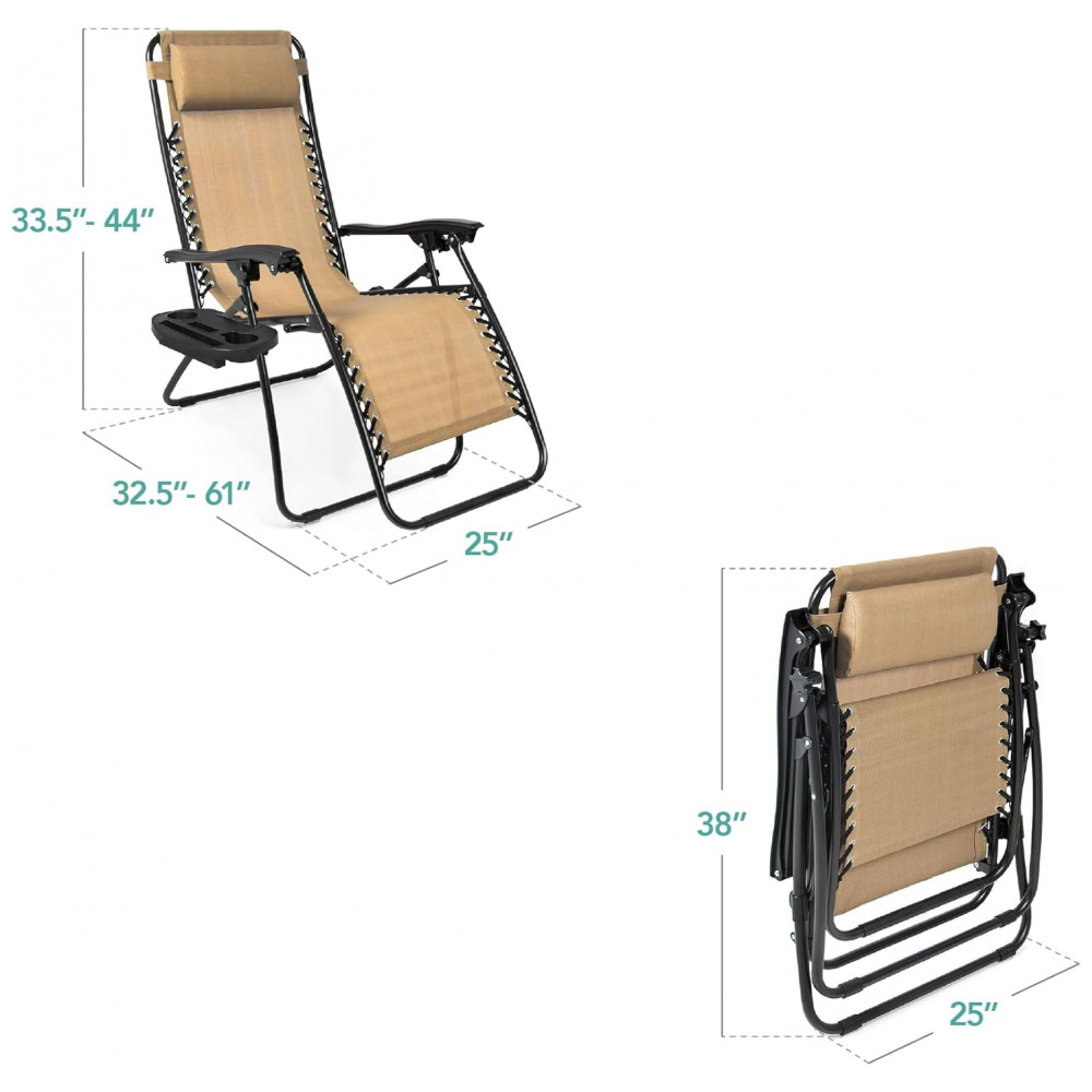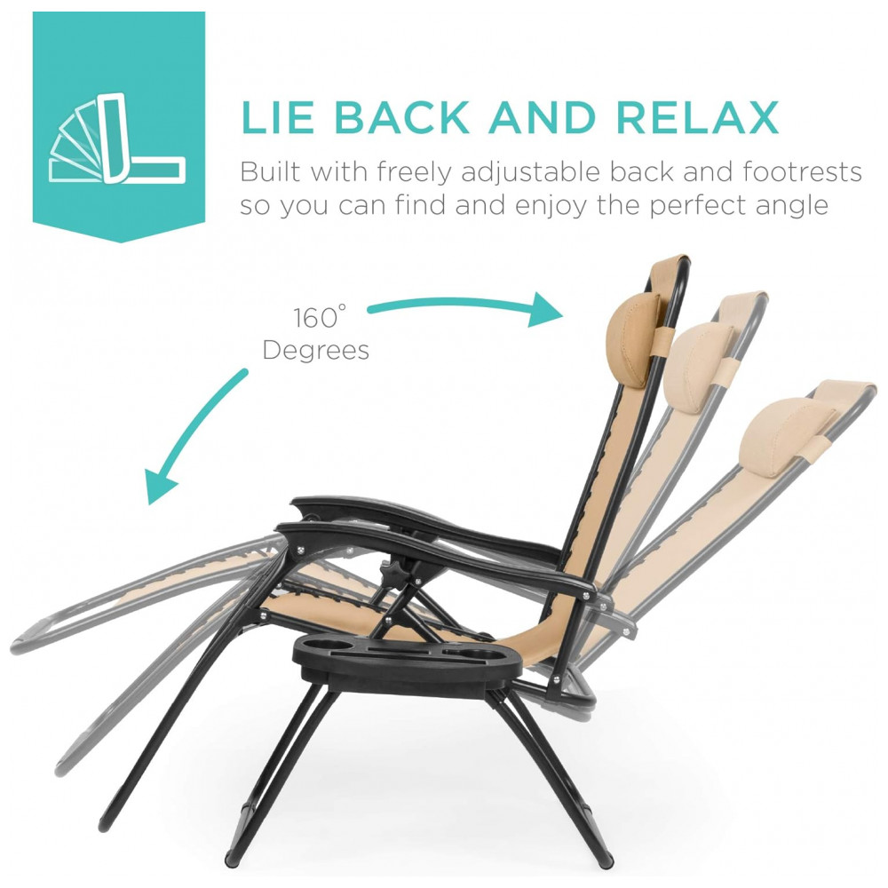 Conjunto de 2 Cadeiras Reclináveis de Aço com Sistema Zero Gravity da Best Choice Products – Bege