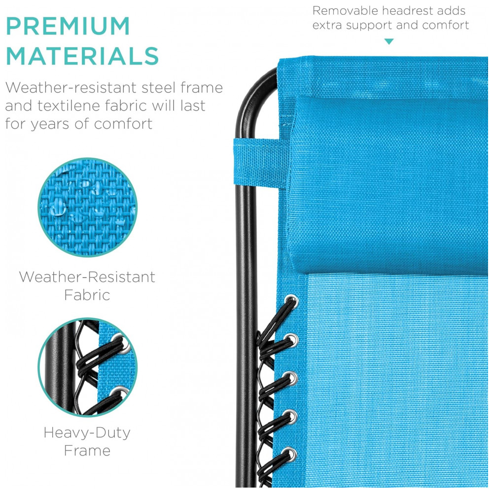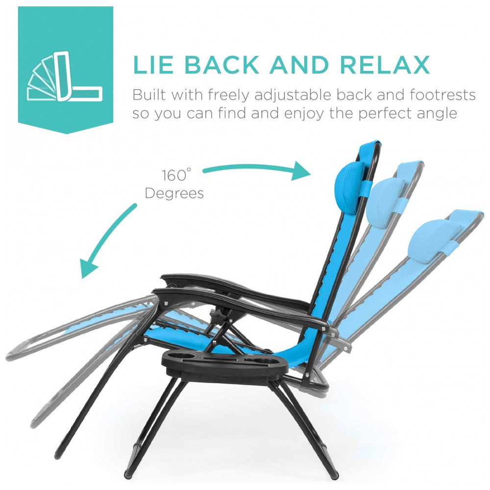Conjunto de 2 Cadeiras Reclináveis de Gravidade Zero com Estrutura de Aço Ajustável e TravesseirosBest Choice Products