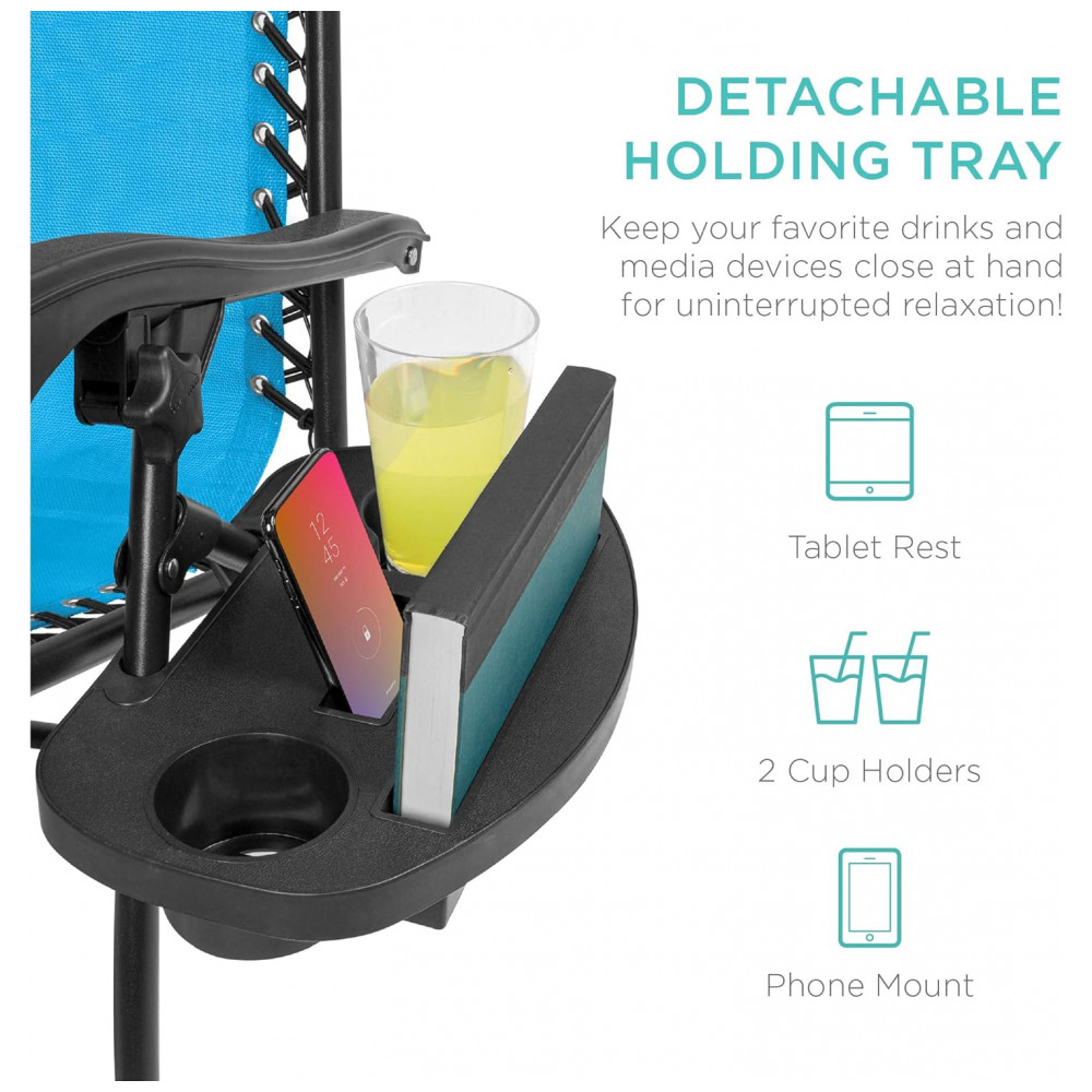 Desfrute do máximo conforto com o sistema de reclinamento bloqueável que se ajusta perfeitamente à posição de gravidade zero, proporcionando relaxamento total. Leve e portátil, ideal para viagens ao parque, praia ou eventos esportivos. Bandeja removível com porta-copos, porta-celular e suporte para tablet. Resistente, suporta até 113 kg, com tecido textilene durável. Inclui encostos de cabeça removíveis e ajustáveis para conforto extra. Dimensões abertas: 82.55cm x 63.5cm x 113cm. Dimensões dobradas: 96.5cm x 63.5cm x 15.3cm. Capacidade de peso: 113kg.