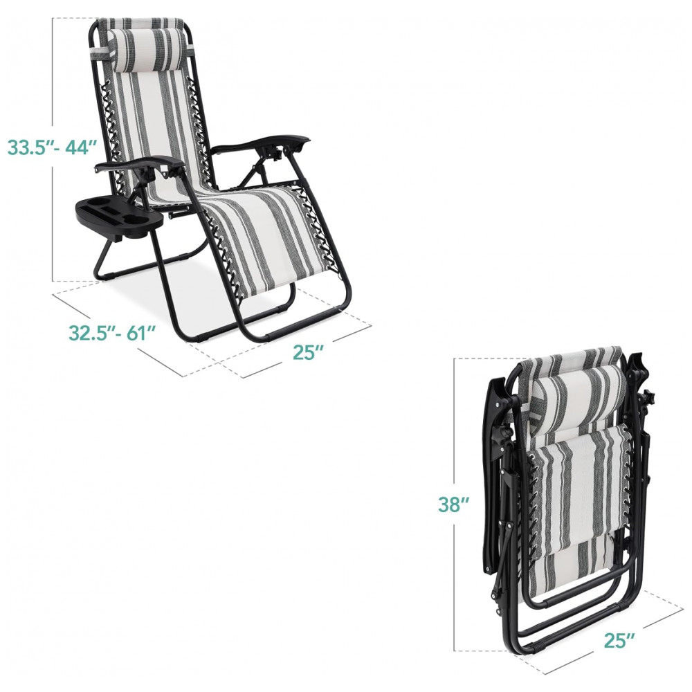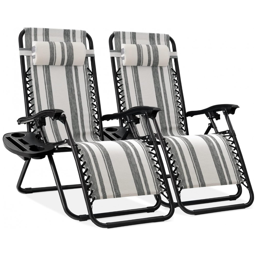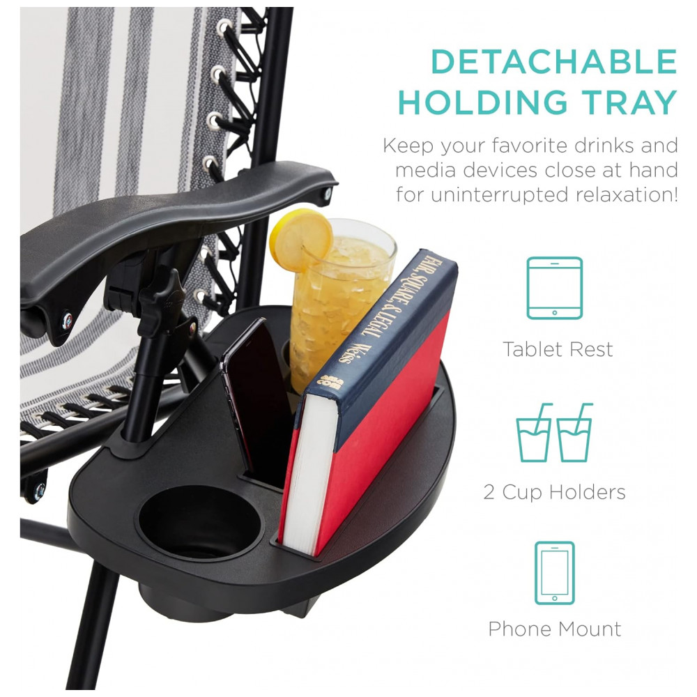 Conjunto de 2 Cadeiras Reclináveis de Gravidade Zero de Malha de Aço Ajustáveis com Almofadas e Bandejas de Suporte para Copos Best Choice Products