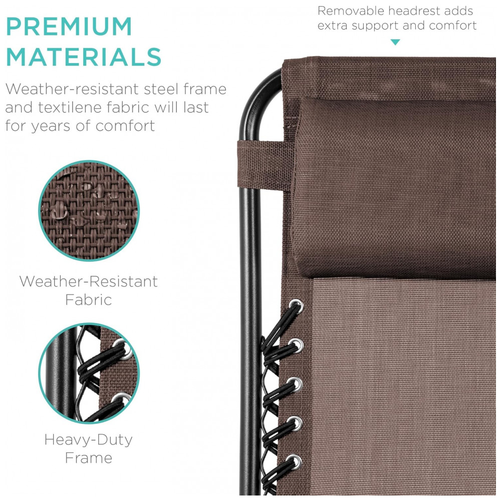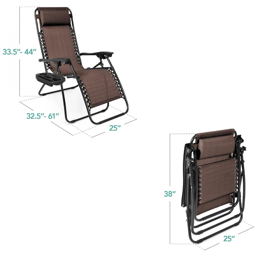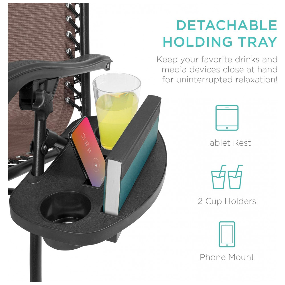 Conjunto de 2 Cadeiras Reclináveis de Gravidade Zero de Malha de Aço Ajustável com Almofadas e Bandejas de Suporte para Copos – Best Choice Products