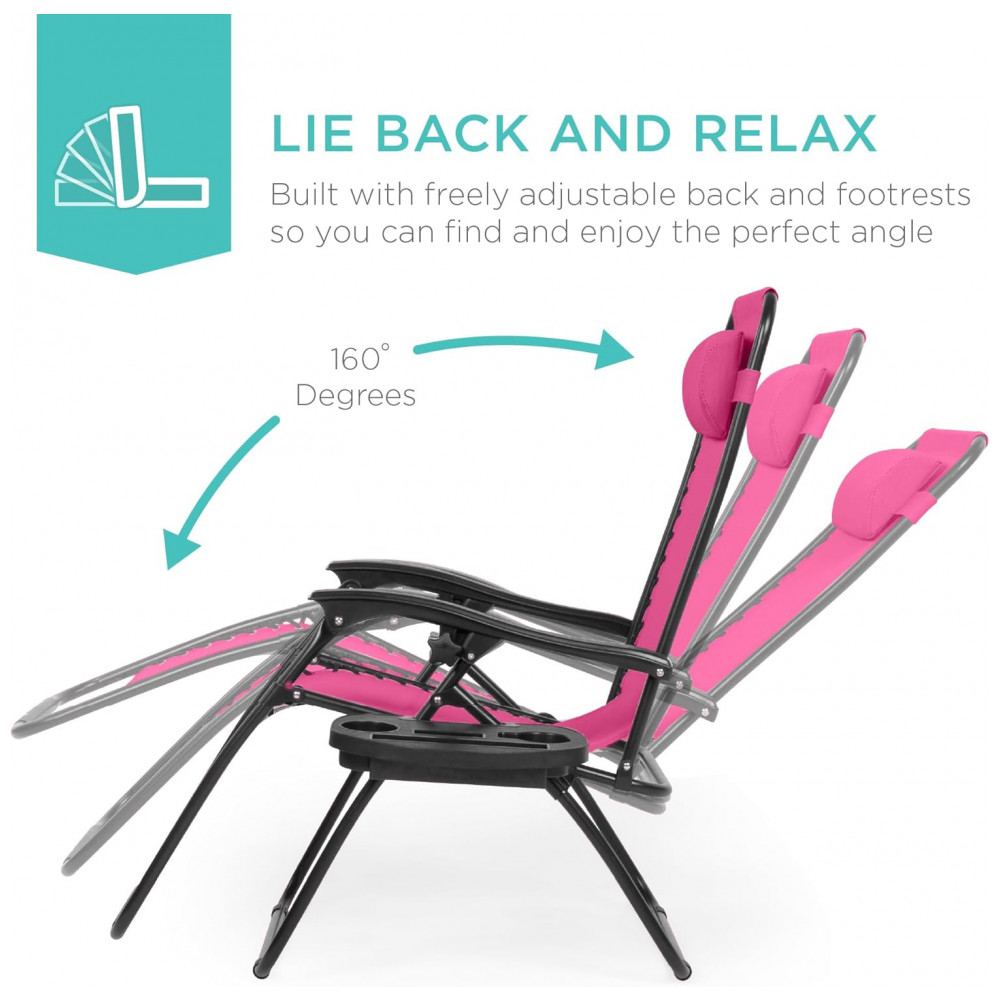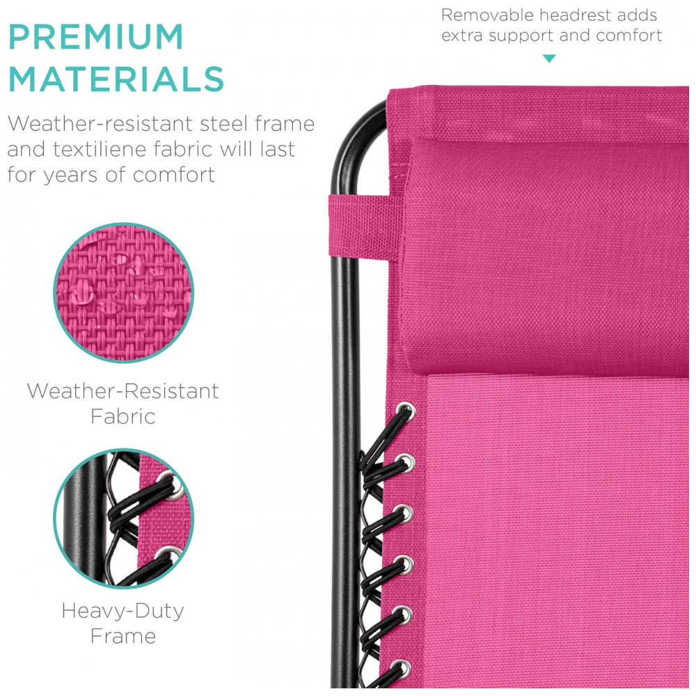 Conjunto de 2 Cadeiras Reclináveis de Gravidade Zero em Aço com Tela de Malha Ajustável da Best Choice Products – Rosa Quente/Preto