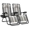 Aproveite o sistema de reclinamento travável que desliza suavemente para uma posição ergonômica de gravidade zero. As cadeiras são leves e dobráveis, ideais para levar para o parque, praia ou eventos esportivos. O design inclui uma bandeja removível com porta-copos, porta-celular e porta-tablet. Construção confiável suportando até 113kg, com tecido textilene durável. Inclui encostos de cabeça removíveis e ajustáveis para máximo conforto. Dimensões abertas: 82,5-155cm C x 63,5cm L x 85-112cm A. Dimensões dobradas: 96,5cm C x 63,5cm L x 15cm A. Capacidade de peso: 113kg.