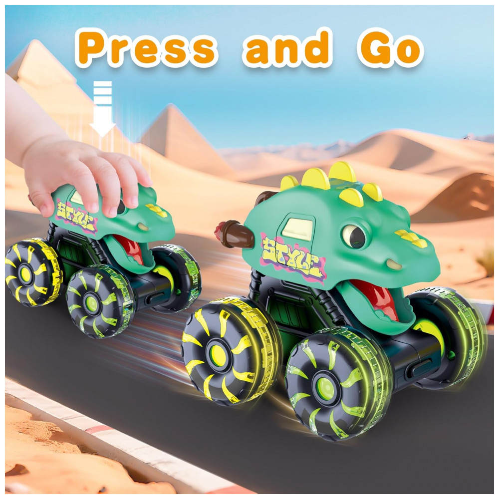 Explore o mundo dos dinossauros com este conjunto de 3 caminhões monstros em forma de dinossauros! Cada caminhão vem com rodas LED brilhantes que acendem no escuro, tornando a brincadeira ainda mais divertida. Feitos com material ABS seguro, esses caminhões são resistentes e possuem o tamanho perfeito para as mãos pequenas das crianças. Além disso, as bocas dos dinossauros se movem enquanto os caminhões estão em movimento, proporcionando horas de diversão interativa. Um presente ideal para os pequenos exploradores!