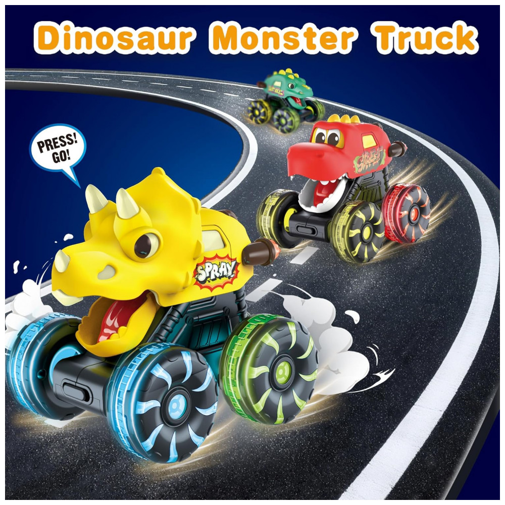 Conjunto de 3 Caminhões Monstros de Dinossauro com Rodas LED para Crianças PequenasOMAKCOO