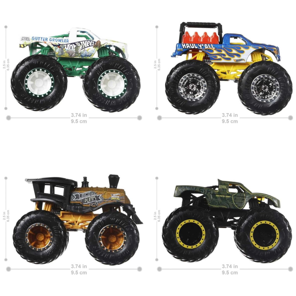 Conjunto de 4 Caminhões Hot Wheels Monster Trucks Escala 1:64 com Rodas Gigantes Modelos Variados