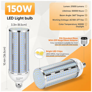 Apresentamos as Lâmpadas de LED de Milho XYCN, projetadas para oferecer iluminação potente e durável. Com chips de LED de alta qualidade e sistema de controle de calor, garantem uma vida útil prolongada de mais de 55.000 horas. Com índice de renderização de cor de 85, as cores são reproduzidas fielmente. O design sem ventoinha e dissipação rápida de calor garantem aplicação segura em diversos ambientes. Produzindo incríveis 21.500 lumens com apenas 150 watts, essas lâmpadas são ideais para armazéns, garagens, fábricas e ruas. Obtenha já o seu pacote com 4 unidades!