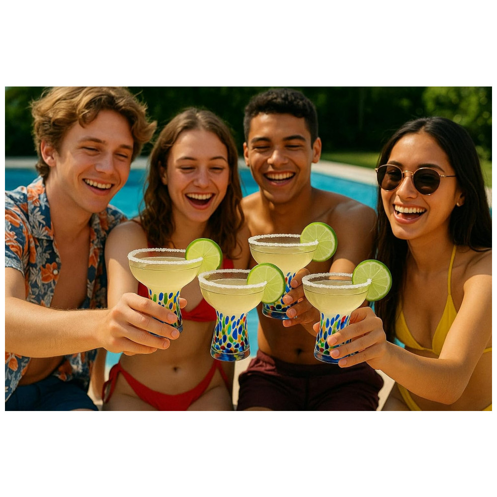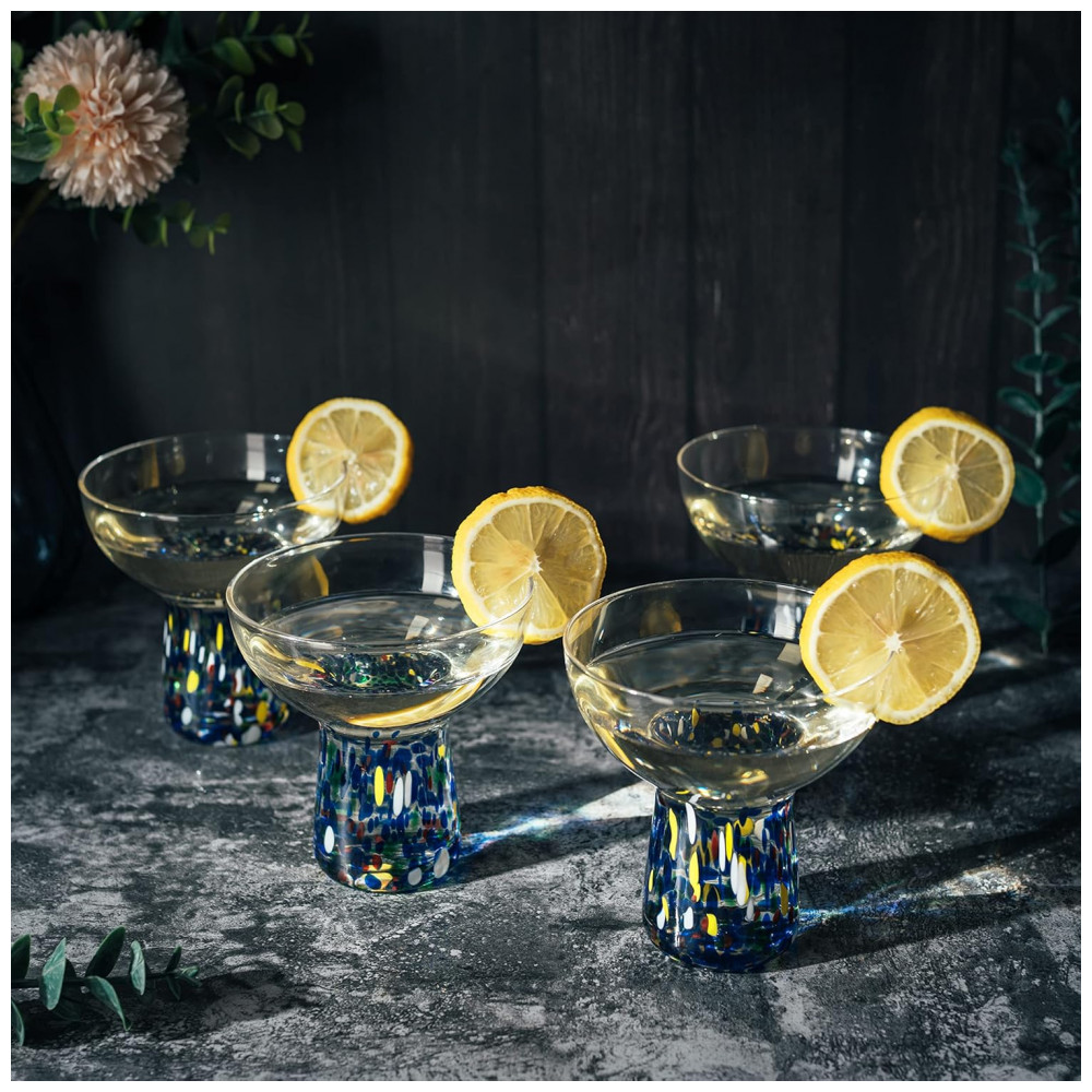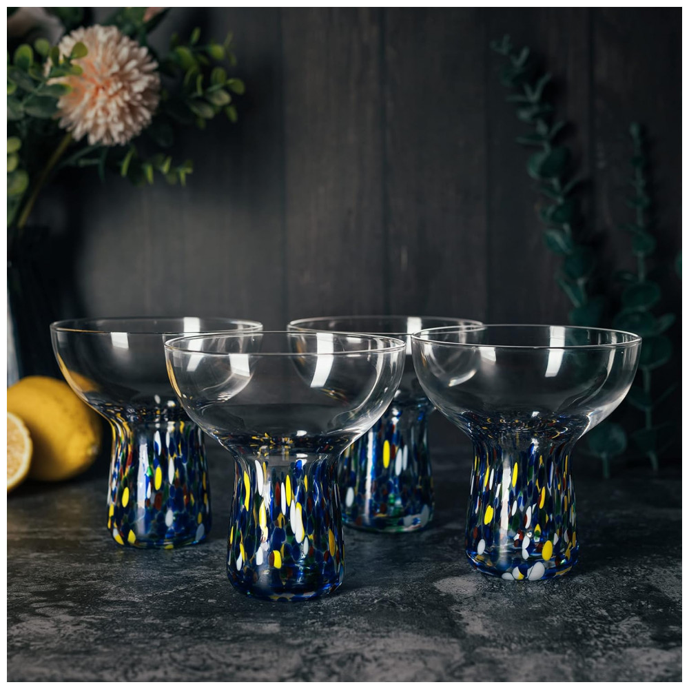 Conjunto de 4 Taças de Margarita Confetti Stemless de 6oz – Artesanais Coloridas de Luxo para Margaritas Martinis Coquetéis Água Vinho e Sobremesa