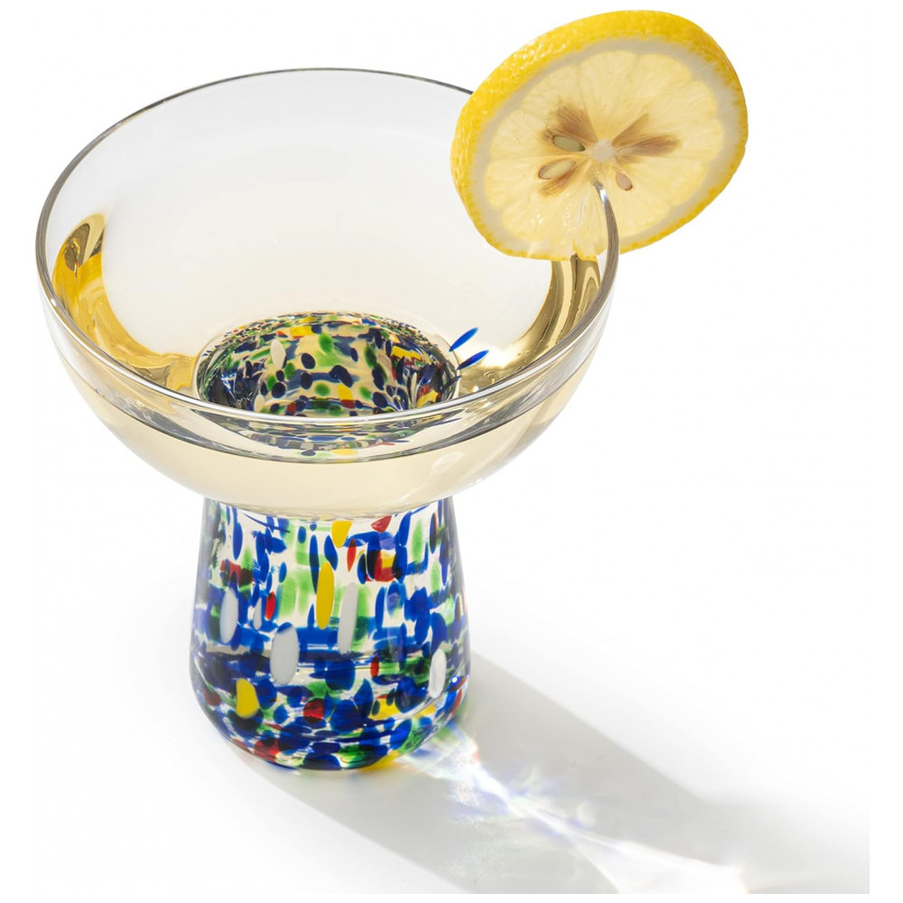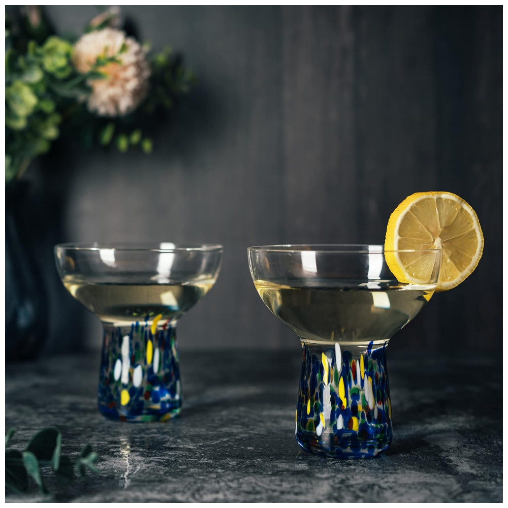 Estas taças coloridas e artesanais apresentam um design confetti atemporal. Criadas por artesãos habilidosos, essas taças de margarita serão o ponto alto de sua festa. Este conjunto de 4 taças de 6 onças é perfeito para desfrutar suas bebidas favoritas com estilo. Com um visual vibrante e acabamento suave, é tanto visualmente atraente quanto um prazer de usar. Além de ser uma adição maravilhosa para seu bar em casa, também é um presente adorável para casamentos, despedidas de solteiro e festas de inauguração.