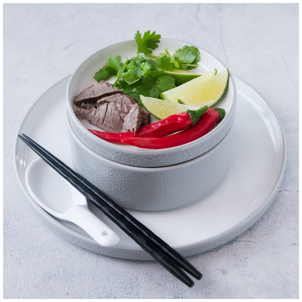Componentes incluídos: Conjunto de 4 tigelas ColorTex Stone Grey, modelo Stax Soup Cereal (dimensões: 15,24 cm x 5,71 cm)