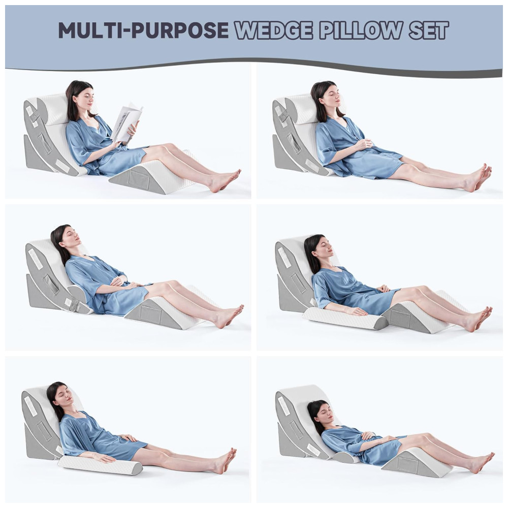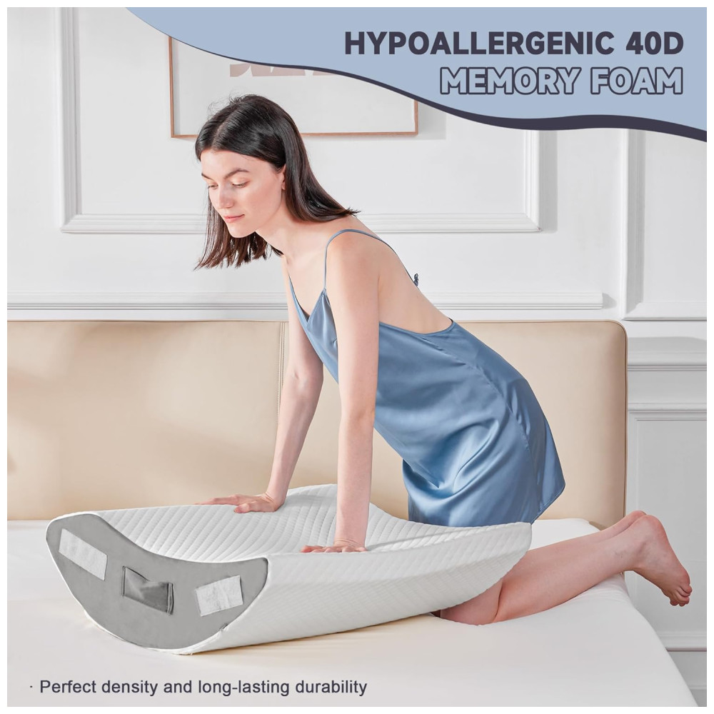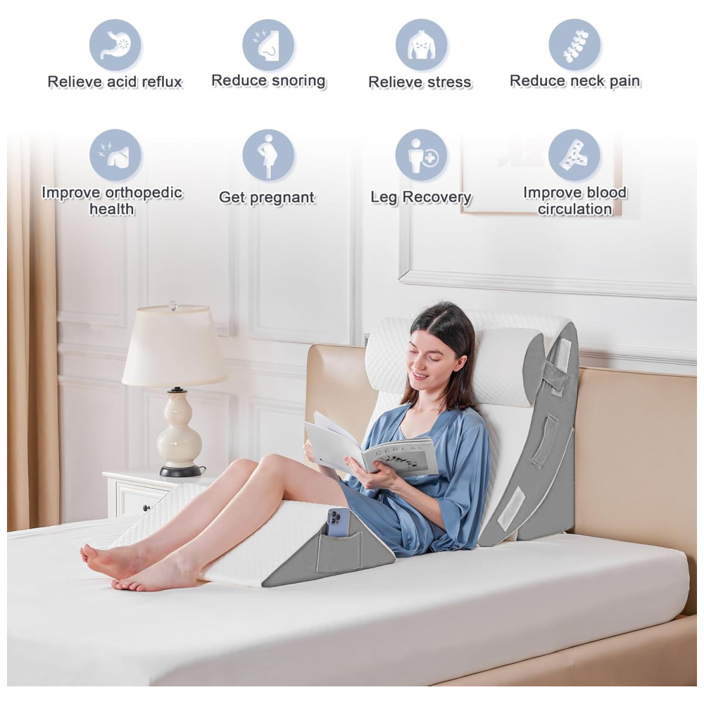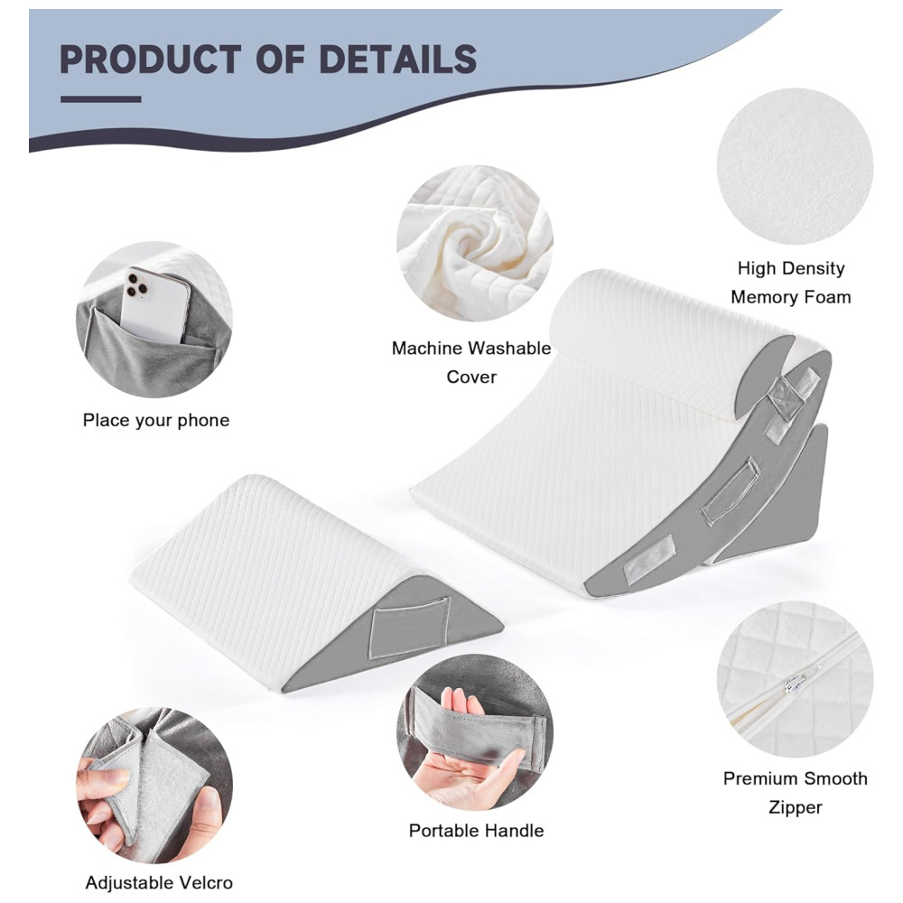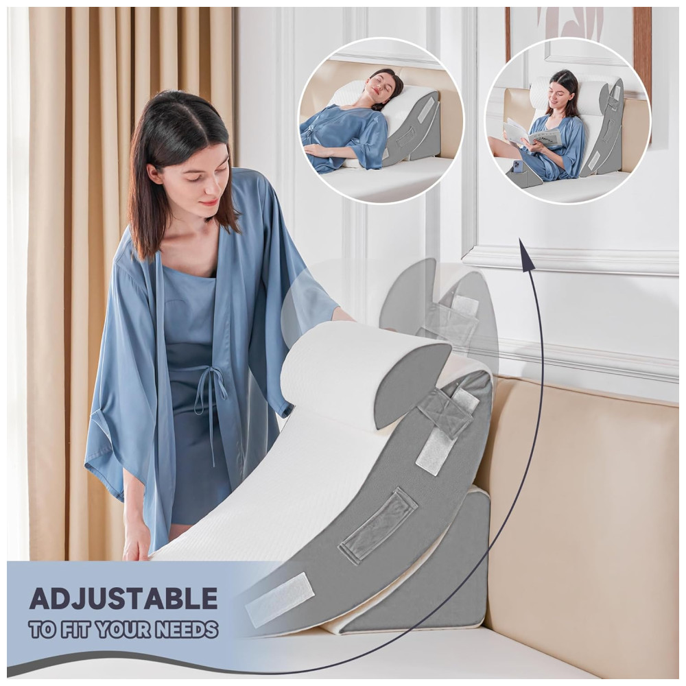O travesseiro triangular Yojoker é ideal para quem busca conforto e suporte para a coluna e pescoço. Seu design ergonômico se adapta perfeitamente à curva da coluna, aliviando a pressão no pescoço e nas costas. Composto por quatro partes, é possível escolher o ângulo adequado para sentar, deitar e dormir nos travesseiros ajustáveis. Além disso, cada capa externa é feita de tecido de pelúcia curto de alta qualidade, macio e agradável à pele, respirável. O travesseiro em cunha para refluxo ácido é multifuncional e pode ser usado na cama, no sofá ou no chão sem escorregar. Possui um enchimento de espuma de memória premium, garantindo conforto e durabilidade duradouros. Com zíper invisível, é mais fácil de remover e limpar a jaqueta. É uma ótima ideia de presente luxuosa para quem busca conforto e felicidade.