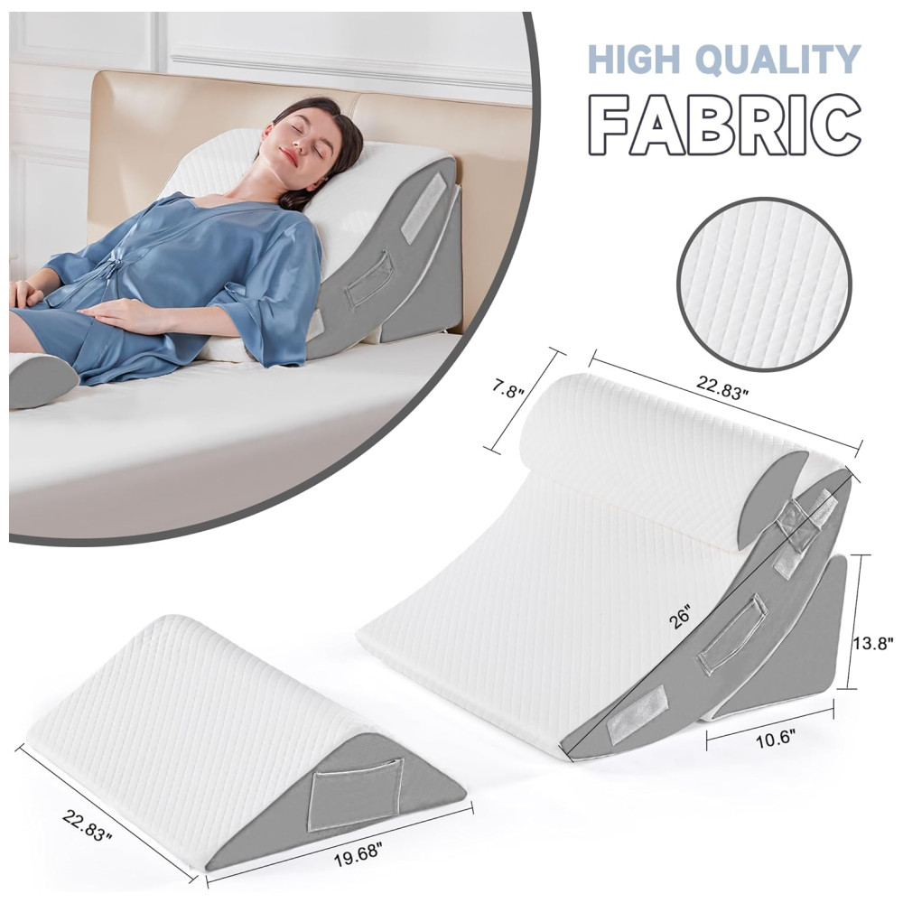 Conjunto de 4 Travesseiros Ortopédicos em Cunha para Alívio de Dor nas Costas Corpo e Pernas Ajustável Pós-Cirurgia Refluxo Ácido e Ronco Branco