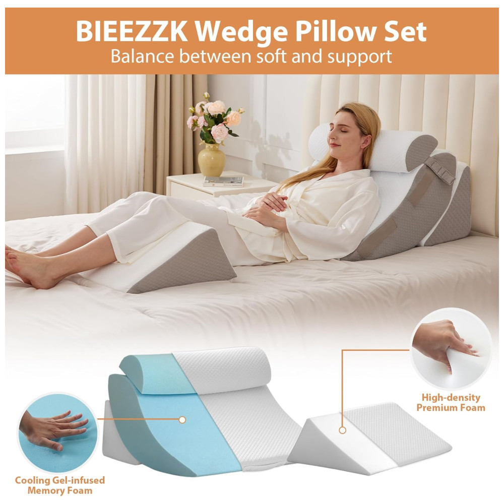 Conjunto de 4 Travesseiros Ortopédicos em Cunha para Alívio de Dor nas Costas Pescoço Ombros Pós-Cirurgia Refluxo Ácido BIEEZZK Branco e Cinza