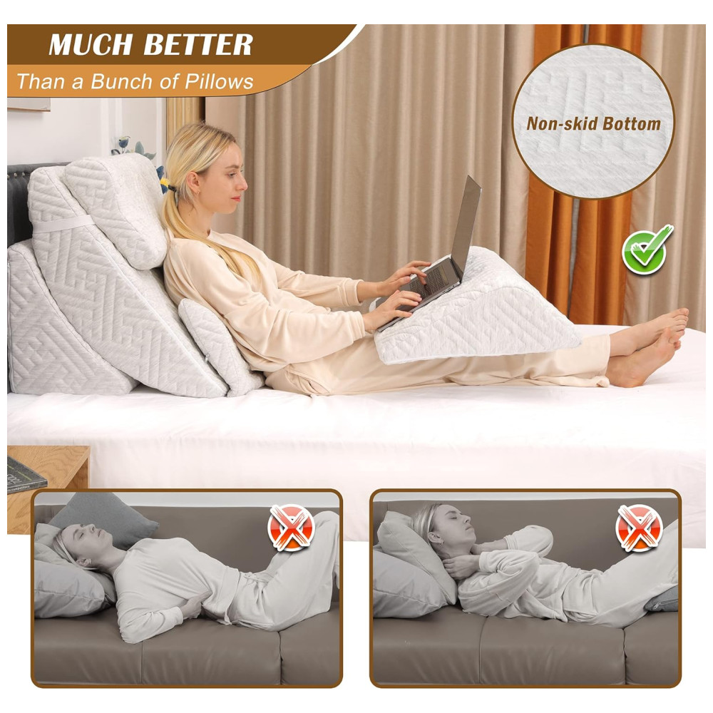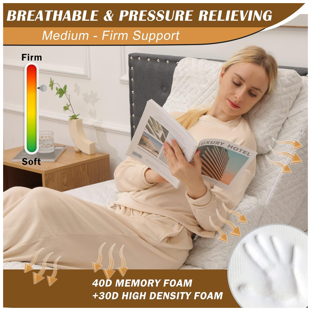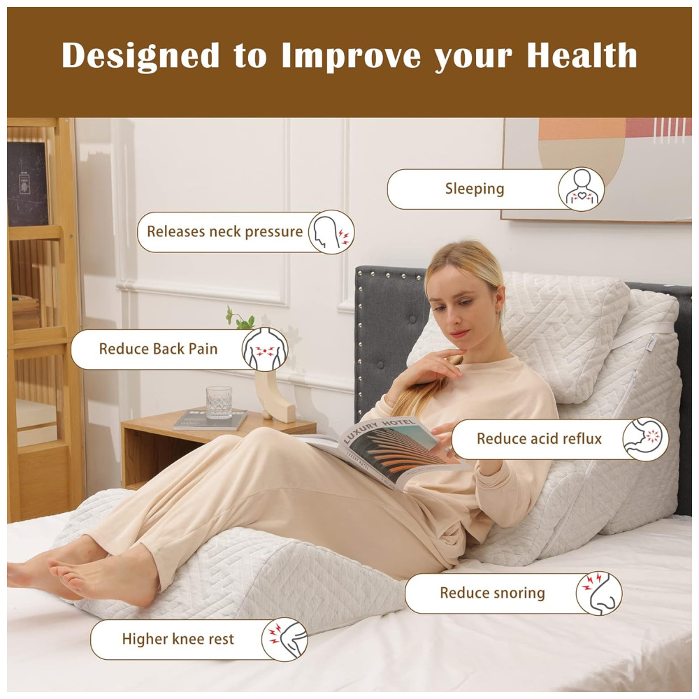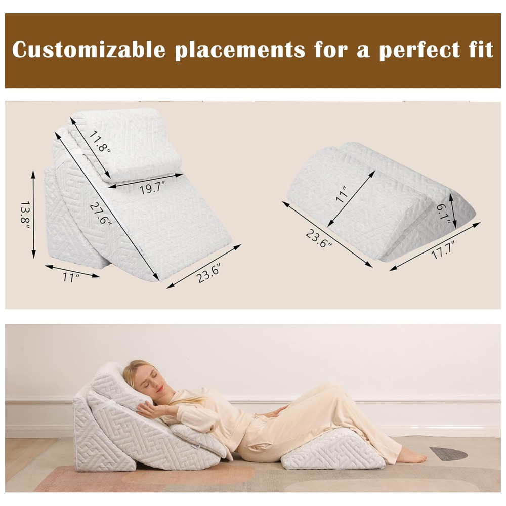 Conjunto de 5 Peças de Travesseiros Ortopédicos em Cunha para Cama Espuma Viscoelástica Ajustável Alívio de Dor e Refluxo Betterhood Cinza