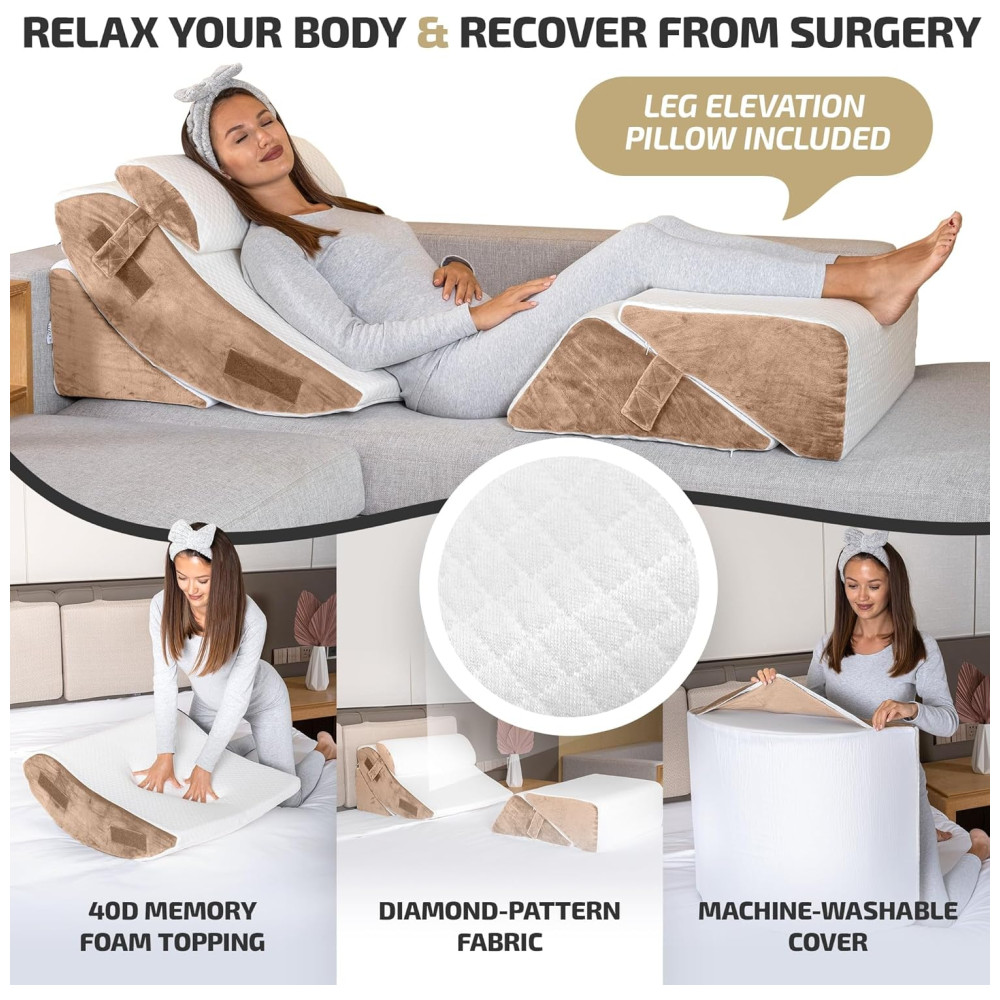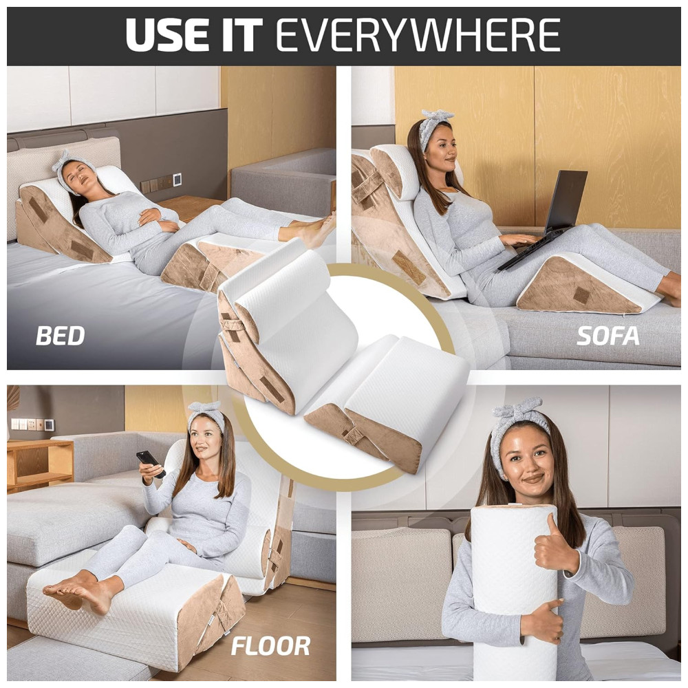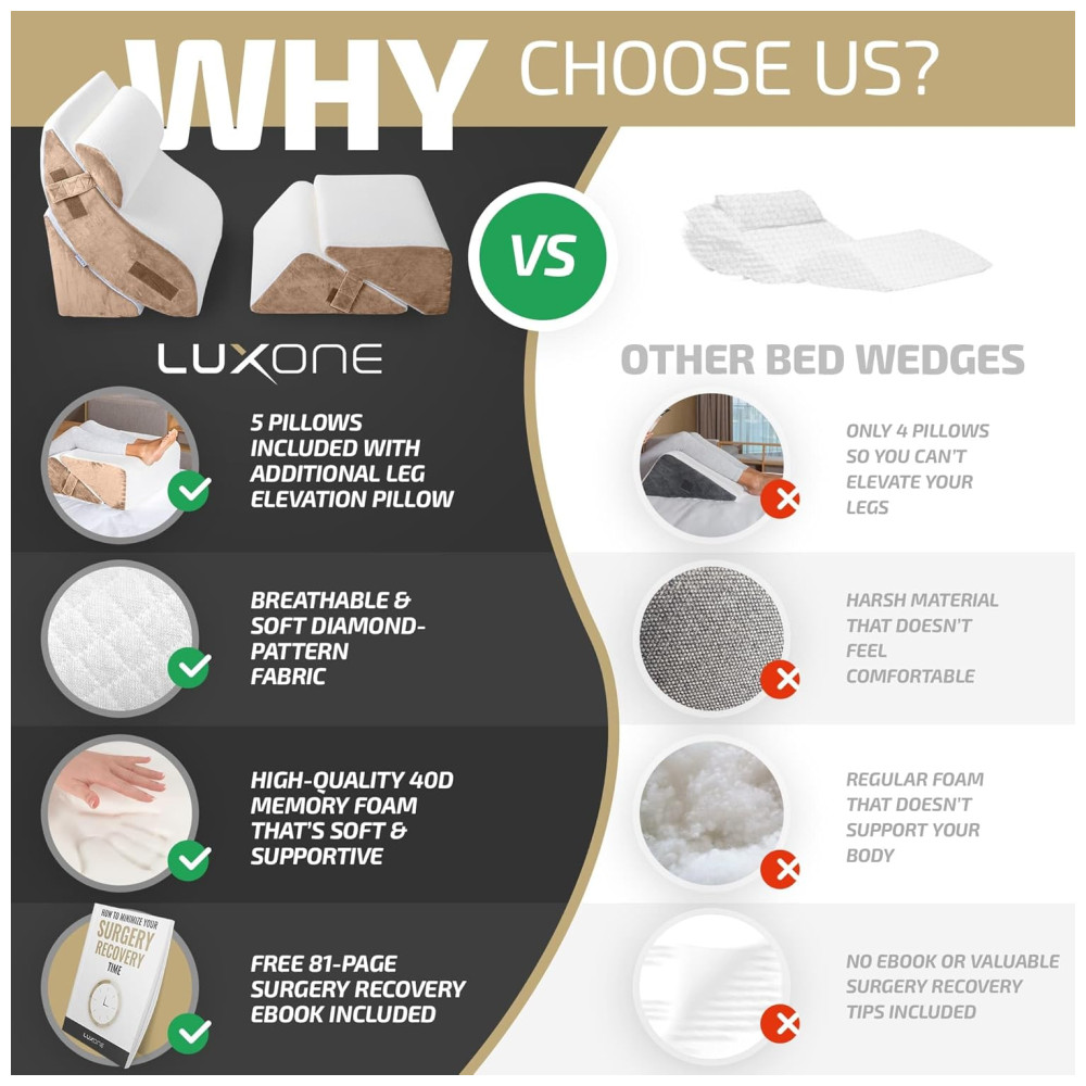 Conjunto de 5 Travesseiros Ortopédicos em Cunha para Cama Apoio para Pernas e Recuperação Pós-Cirúrgica Alívio de Dor e Refluxo Ácido Luxone