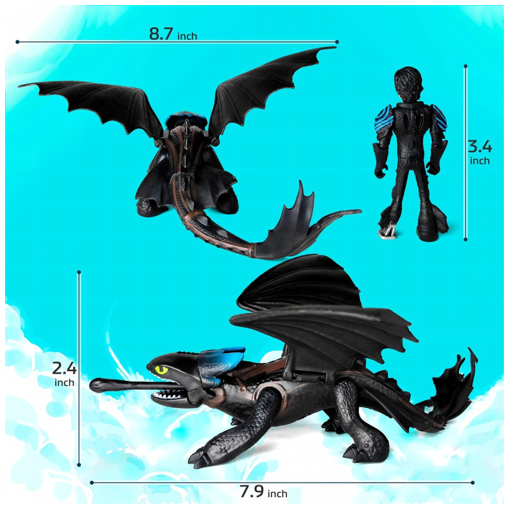 O conjunto de brinquedos ‘Como Treinar o Seu Dragão’ inclui os personagens favoritos dos desenhos animados, como Light Fury, Night Fury, Deadly Nadder, Astrid Hofferson e duas miniaturas de Hiccup. Cada miniatura é feita de plástico PVC seguro e não tóxico, com detalhes impressionantes e cores vibrantes. Com altura média de aproximadamente 22 cm, essas miniaturas são perfeitas para mãos de crianças, sendo um presente ideal para aniversários e Natal. As figuras também são excelentes para decorar bolos. Asas dos dragões podem estar amassadas devido à embalagem, mas isso se resolve facilmente. Deixe sua imaginação voar e explore um mundo incrível onde dragões e vikings convivem juntos. Este grande conjunto de brinquedos alegrará qualquer festa infantil. Por questões de segurança, os dragões não possuem mecanismo de disparo. Estes dragões não atiram! É importante ter isso em mente ao adquirir o brinquedo.
