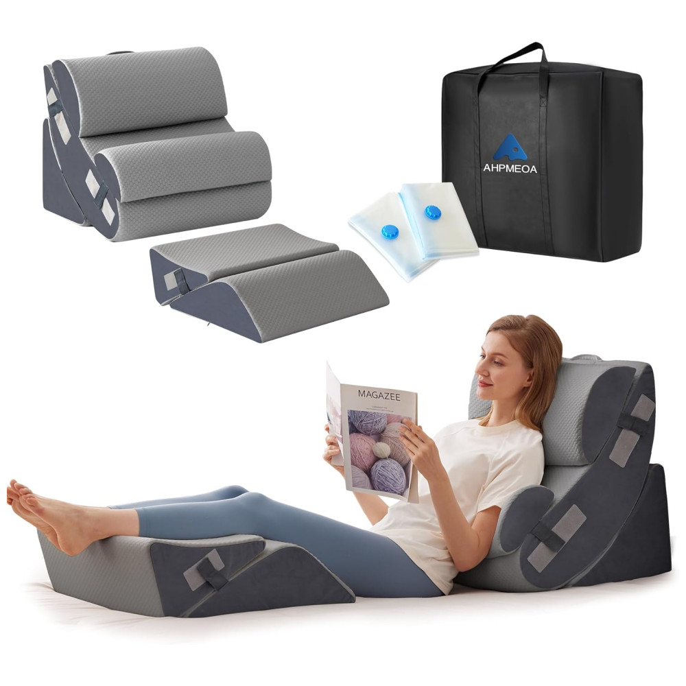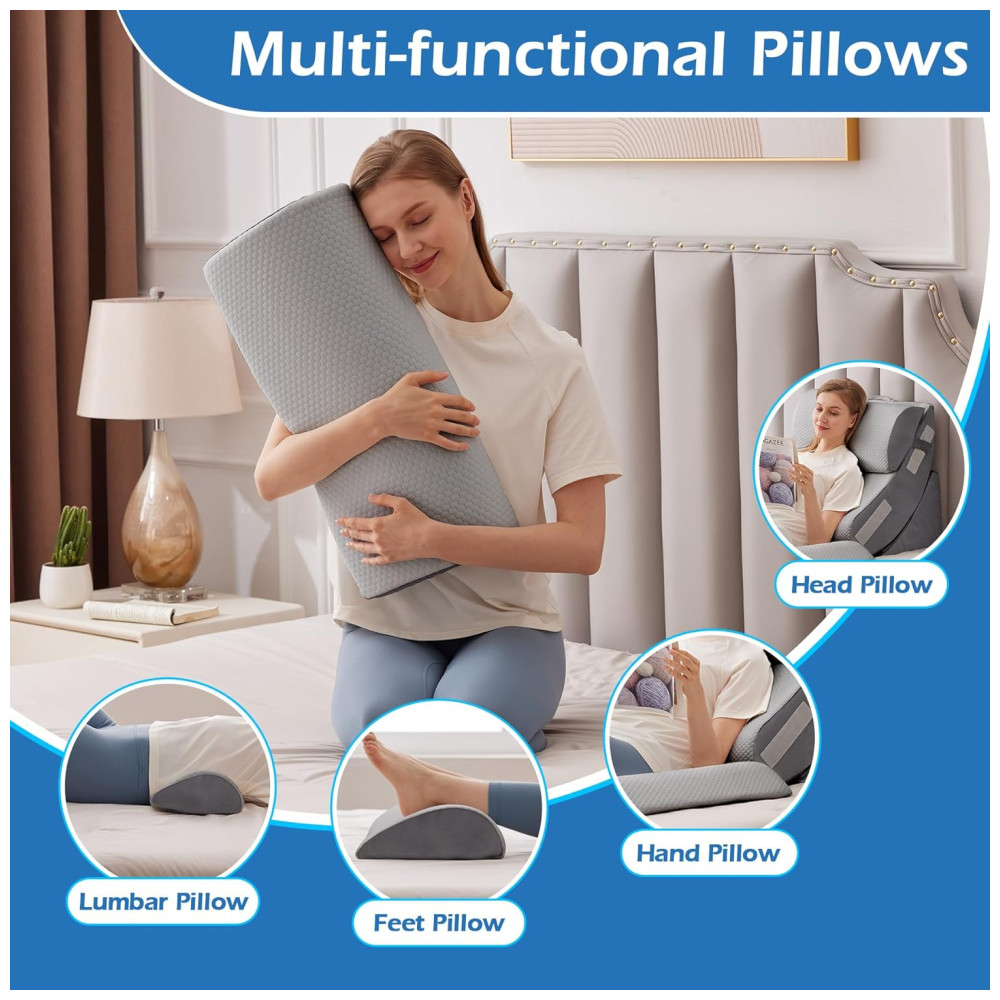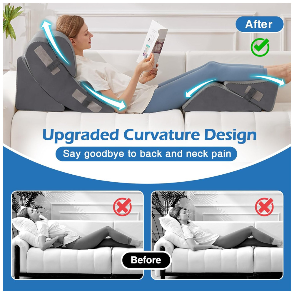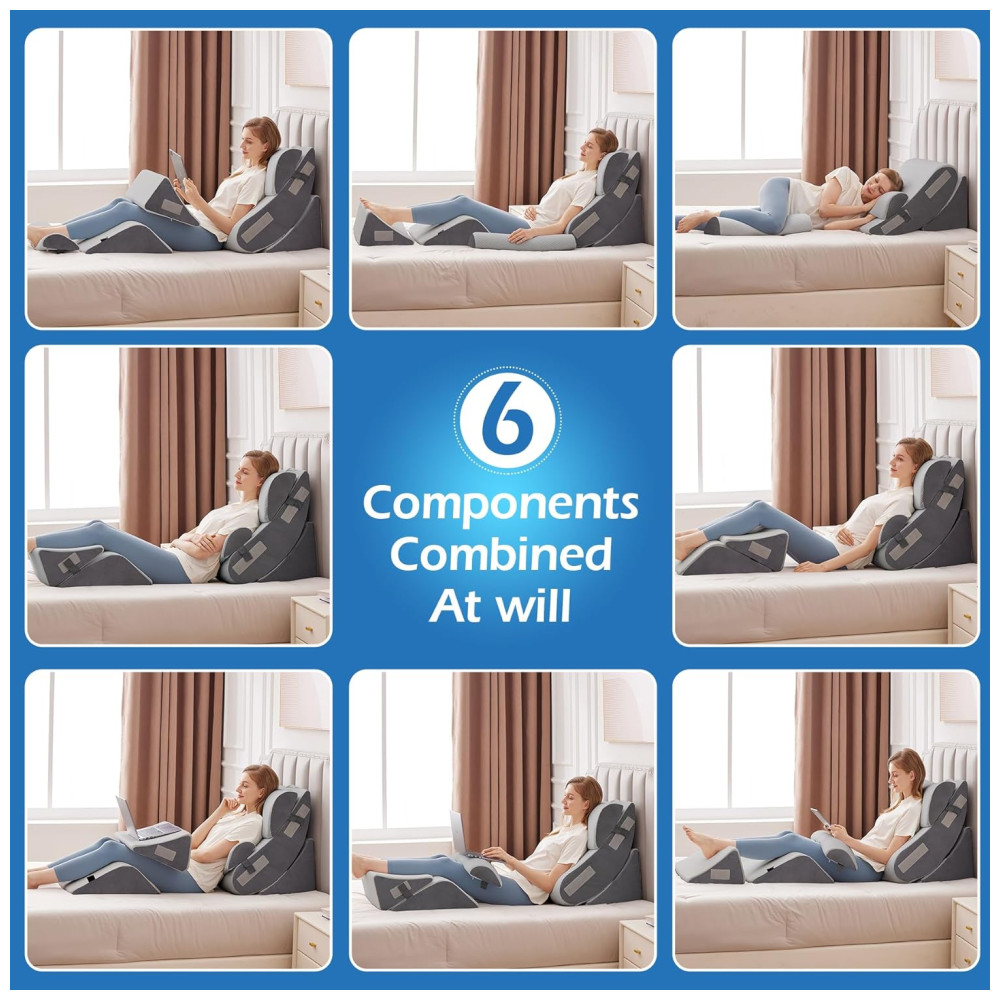 Conjunto de 6 Travesseiros Ortopédicos de Espuma viscoelástica Pós-CIrúrgico para Alívio da Dor nas Costas Ahpmeoa Cinza