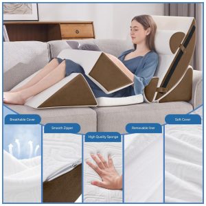 Este conjunto de travesseiros ortopédicos em cunha é ideal para recuperação pós cirúrgica, aliviando a dor da cirurgia, desconforto nas costas, pescoço e ombros, refluxo ácido, DRGE e muito mais. Com um design ergonômico, oferece mais de 16 maneiras de usá lo, proporcionando conforto personalizado e suporte de corpo inteiro para ler, assistir TV ou relaxar. O travesseiro de cunha traseira ajuda a manter o alinhamento natural da coluna, aliviando a tensão no pescoço, costas e quadris. Os travesseiros apresentam espuma de memória macia que permanece confortável, mesmo com uso prolongado. Além disso, as capas são removíveis e laváveis à máquina com zíperes de grande abertura, tornando a limpeza simples. Disponível em vários tamanhos e cores, este conjunto de travesseiros em cunha é uma opção de presente pensativa para entes queridos que buscam melhorar a qualidade e o conforto do sono. Nota os travesseiros em cunha são embalados a vácuo para envio ideal. Basta esperar de 12 a 24 horas para que eles se expandam completamente antes de desfrutar de um sono reparador e suporte.
