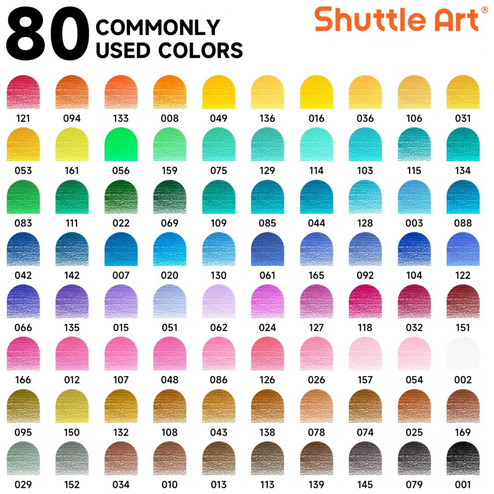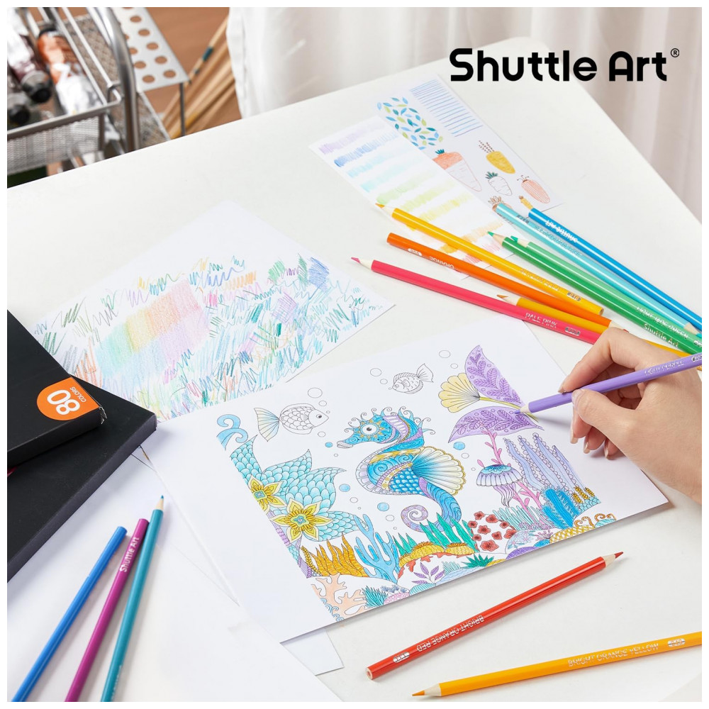 Com o conjunto de 80 lápis de cor da Shuttle Art, você terá à disposição 80 cores únicas e não duplicadas, cada uma identificada com nome e número na embalagem, perfeitas para colorir livros de adultos e crianças. Cada lápis possui nome e número da cor, facilitando a escolha. Suas cores ricas e vibrantes deslizam suavemente no papel, ideais para colorir, desenhar, sombrear e misturar. Os lápis possuem núcleo macio e resistente a quebras, garantindo durabilidade e facilidade para misturar. Além disso, são seguros para todas as idades, atendendo aos padrões de segurança. Ideal para artistas de todos os níveis.