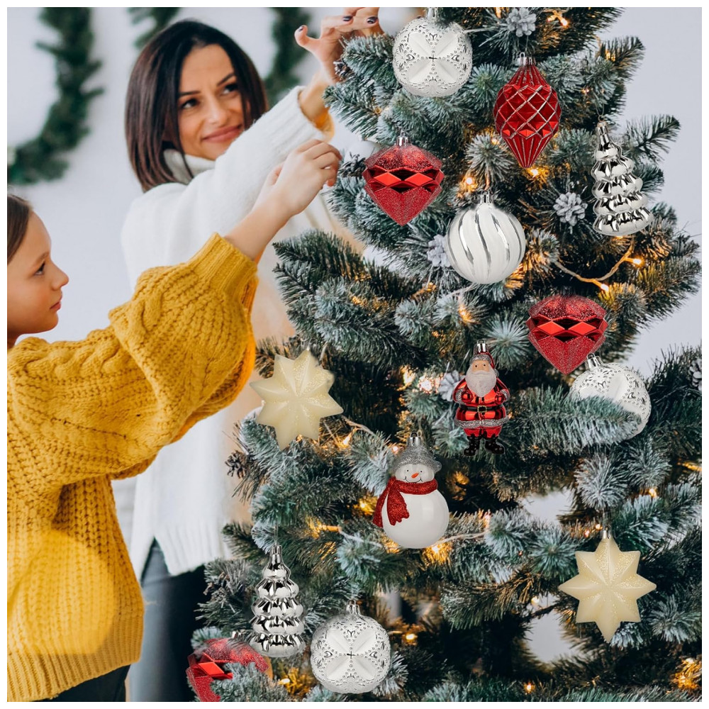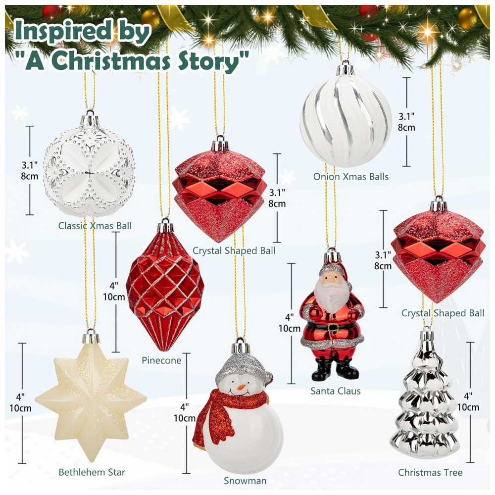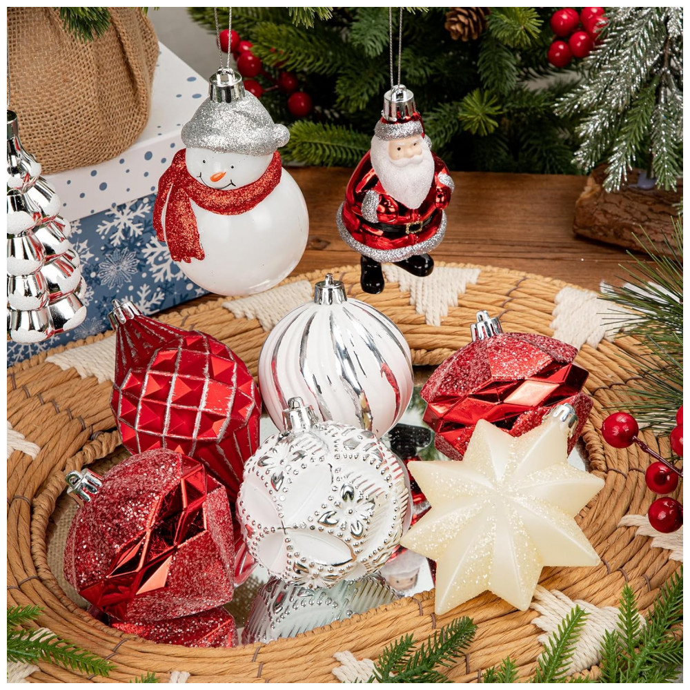 Conjunto de 9 Bolas de Natal Vermelhas e Brancas para Árvore de Natal Decoradas com Boneco de Neve Papai Noel e Estrela Villa Como