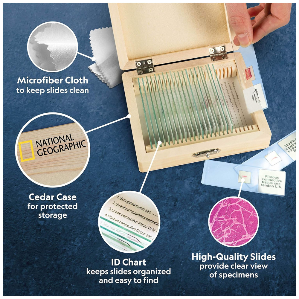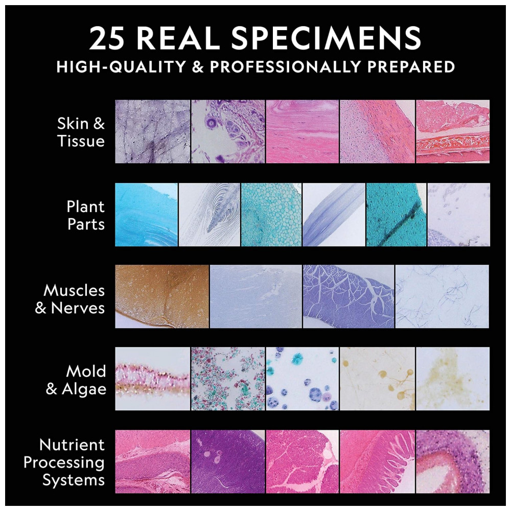 Conjunto de Amostras de Nível Profissional 25 Lâminas de Microscópio Preparadas National Geographic
