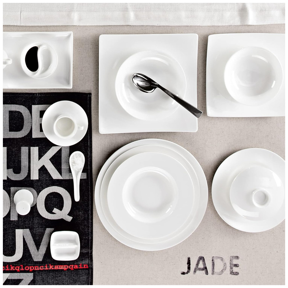 A Coleção Jade Decor da Rosenthal é uma seleção de utensílios de mesa requintados, que combina o estilo asiático com um toque moderno e sofisticado. Este conjunto de porcelana fina é composto por 6 pratos de jantar, com 27 cm de diâmetro, e 6 pratos de sopa, com 23 cm de diâmetro, todos em um elegante tom branco.