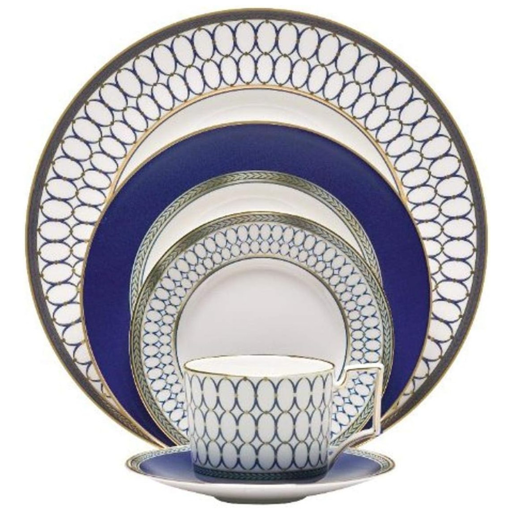 Conjunto de Aparelho de Jantar em Alta Qualidade e Elegância com 5 Peças e Material de Porcelana Wedgwood Branco e Azul