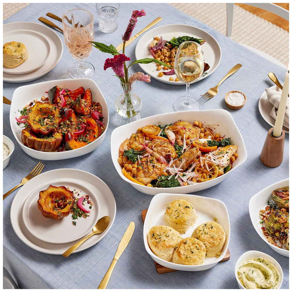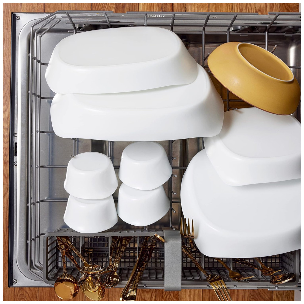 para uso em temperaturas de forno e frango de até 550 graus F, este conjunto de utensílios de vidro Rubbermaid DuraLite pode ir facilmente do forno para a mesa, para a geladeira ou freezer