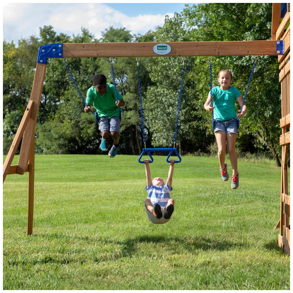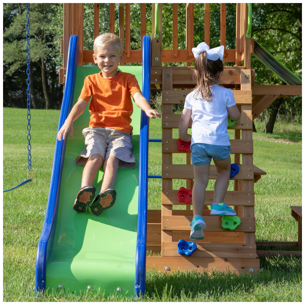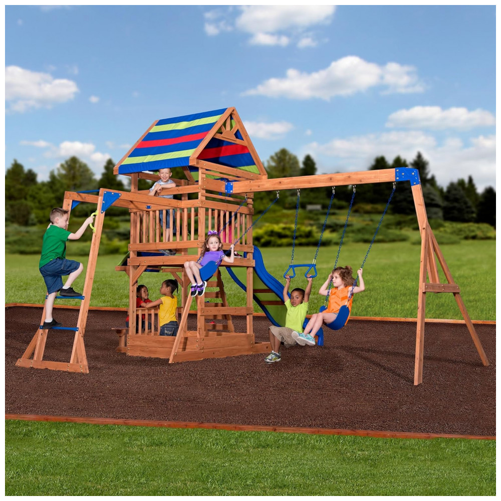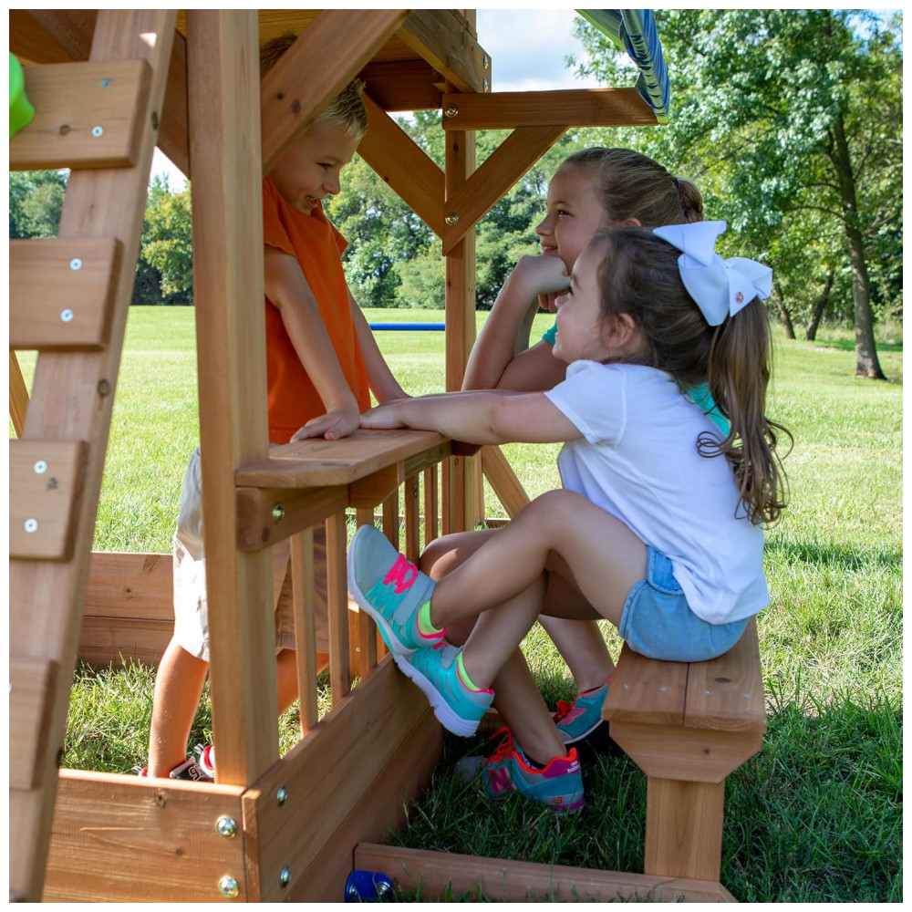 Conjunto de Balanço em Madeira Cedar Backyard Discovery Beach Front Multicolor com Escorregador Ondulado 244 m Área de Recreação Barraca de Lanche Capacidade 399 kg