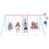 Componentes: 1 escorregador tipo onda, 2 balanços com cintos ajustáveis, parede de escalada de rocha, forte com cobertura, caixa de areia