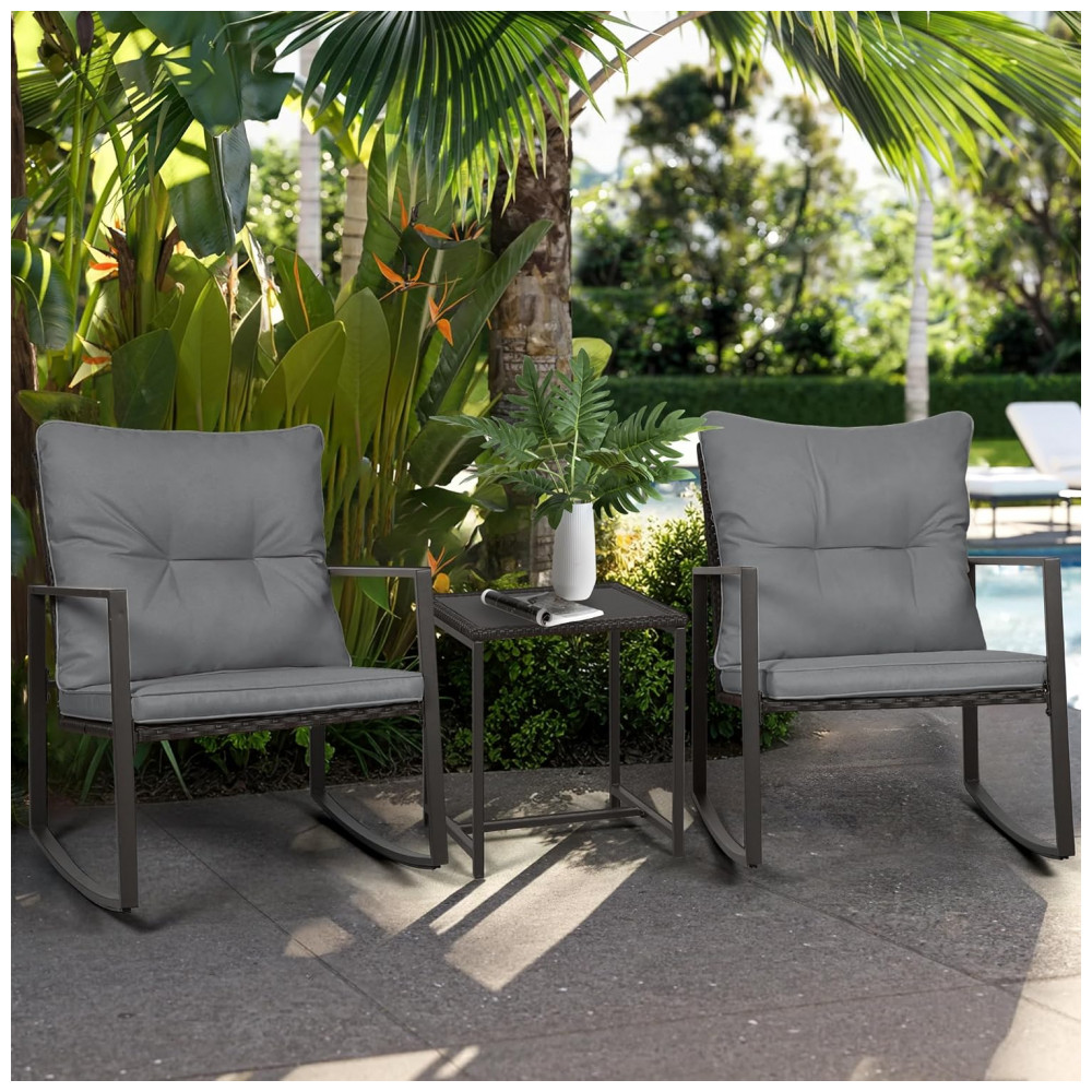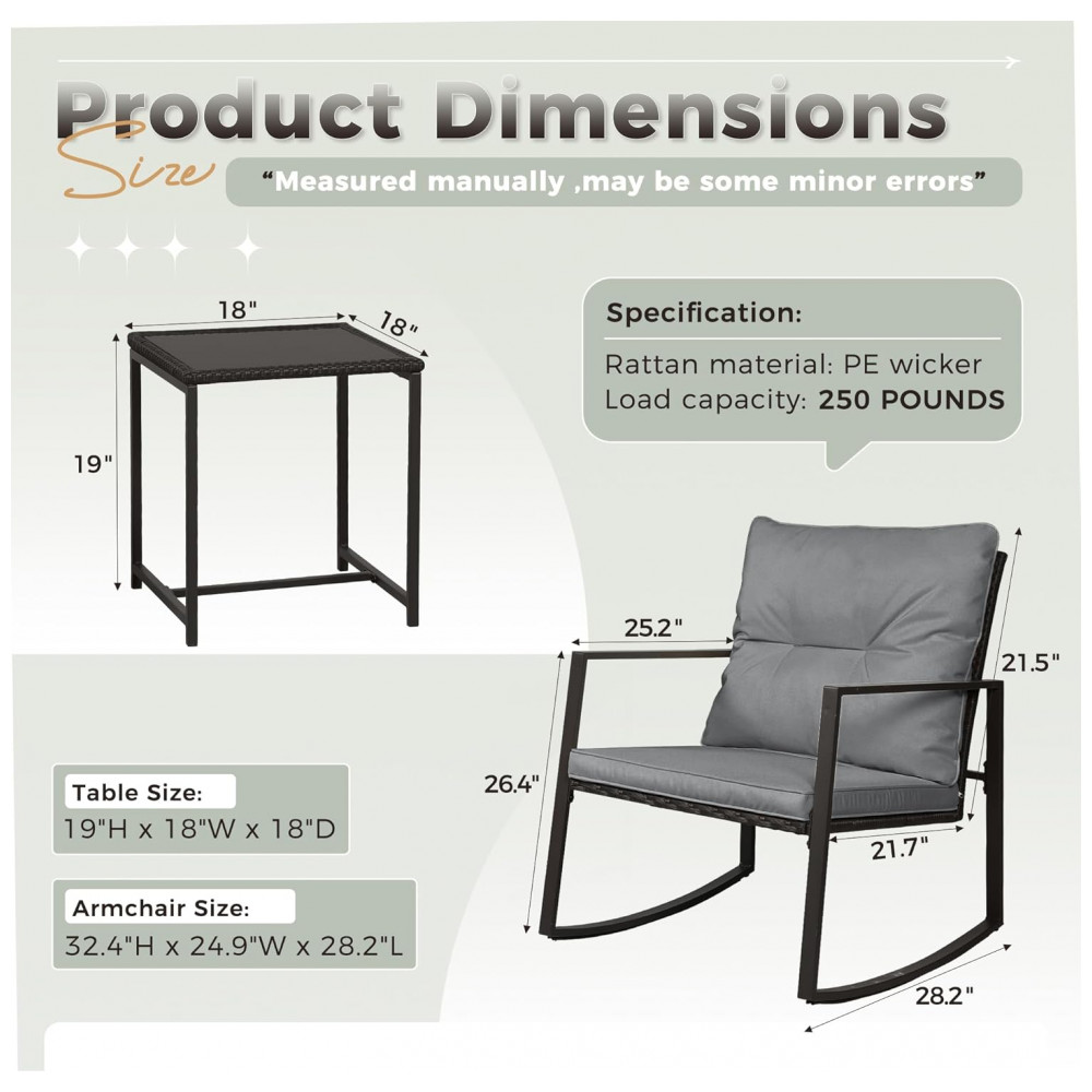 Os cadeiras de balanço ao ar livre da SUNCROWN são feitas com vime de alta qualidade e durabilidade para uso em todas as estações, com textura natural e ótima coloração. A estrutura sólida de aço com revestimento em pó garante resistência e estabilidade. O design de balanço oferece conforto excepcional, com parafusos ajustáveis na base para regular a amplitude do balanço, proporcionando uma sensação relaxante. As cadeiras espaçosas proporcionam amplo espaço para sentar confortavelmente, com pernas e apoios de braço projetados para oferecer suporte adicional. As almofadas melhoradas são compostas por camada de poliéster macio envolta em espuma grossa, garantindo um assento muito confortável. Montagem super fácil sem necessidade de ferramentas, concluída em apenas 20-25 minutos. Uma experiência de cliente incomparável.