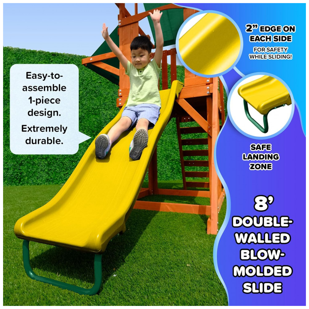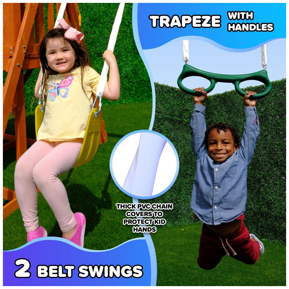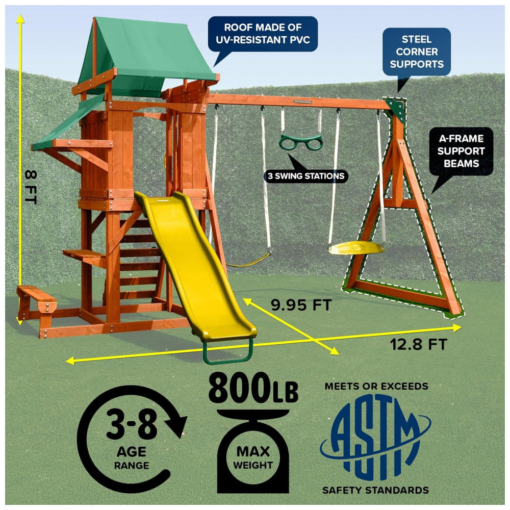 Conjunto de Balanços de Madeira Sportspower Roseville Verde/Amarelo 6 Estações com Escorregador 183 m Capacidade 363 kg