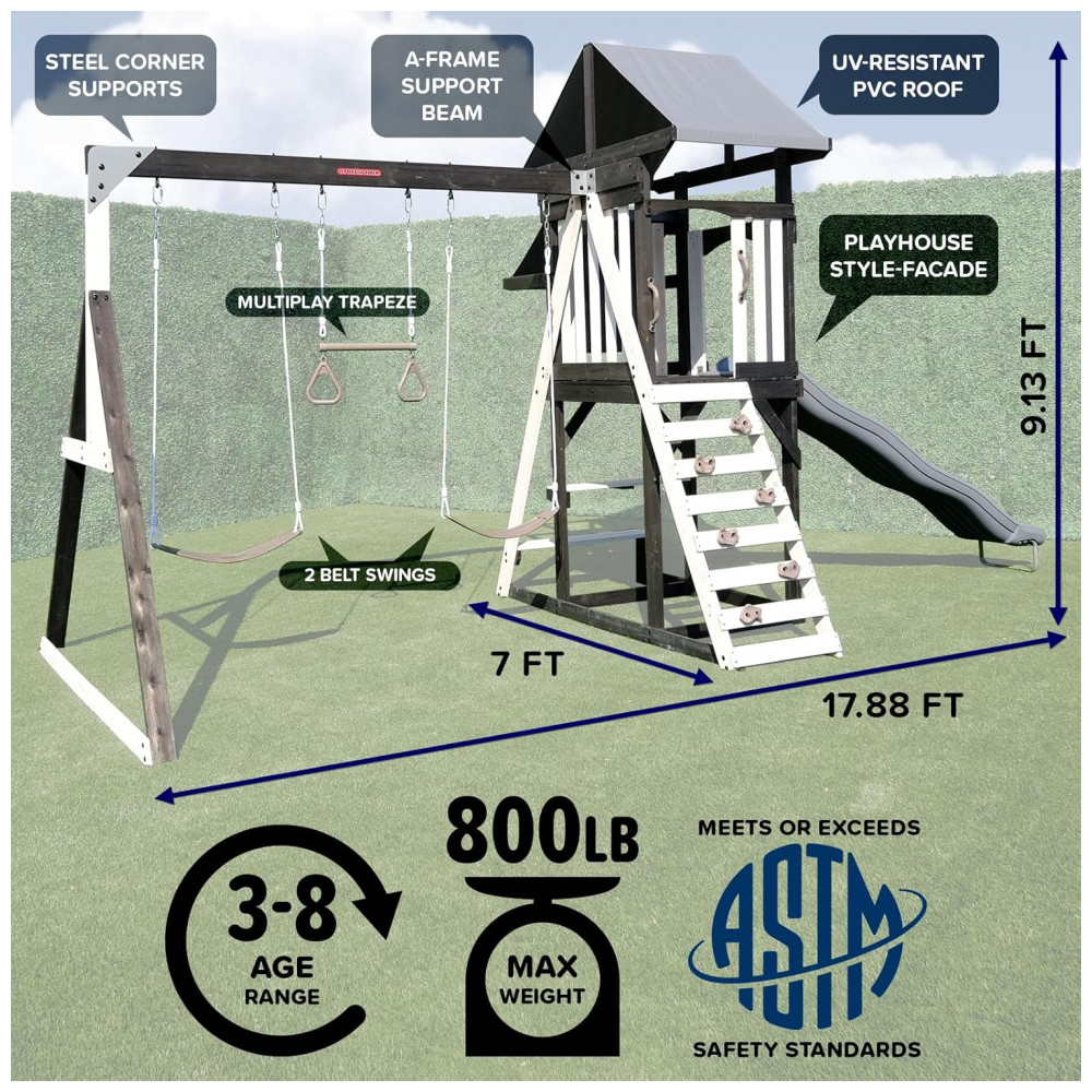 Conjunto de Balanços de Madeira Sportspower Roswell Preto/Verde/Branco 8 Estações com Escorregador 244 m Capacidade 363 kg