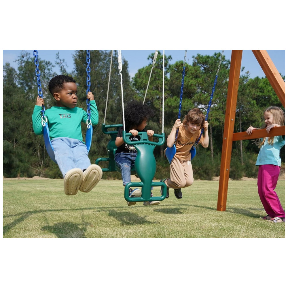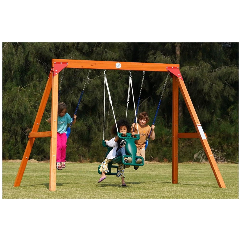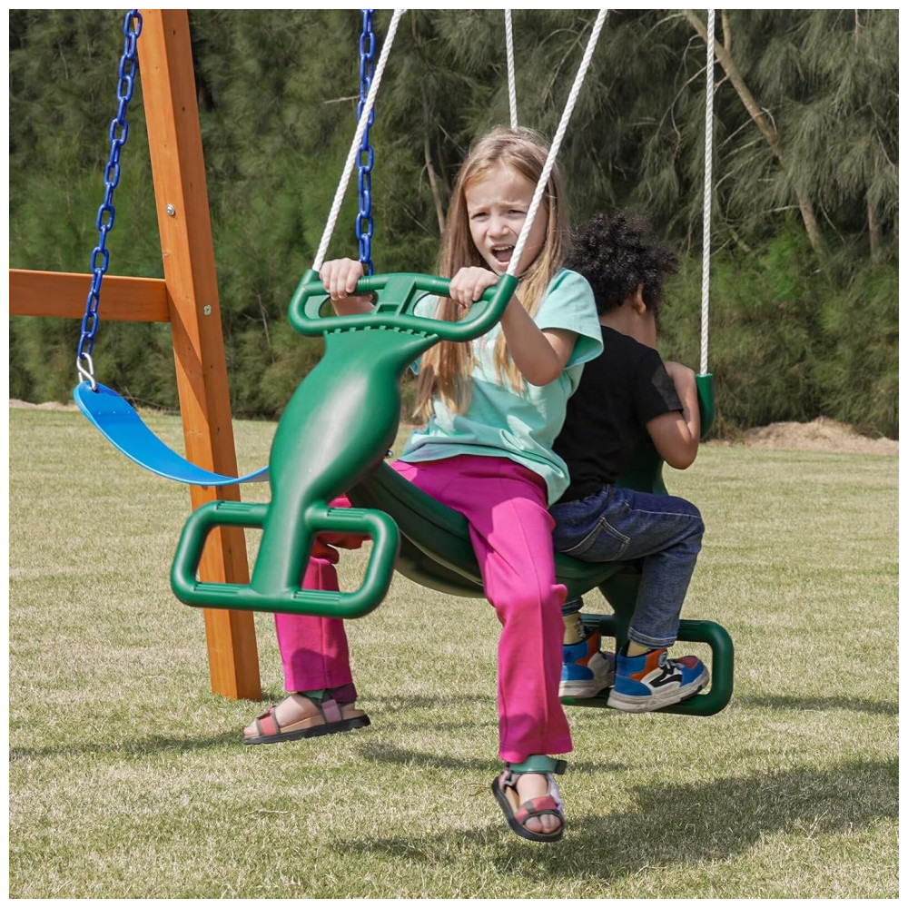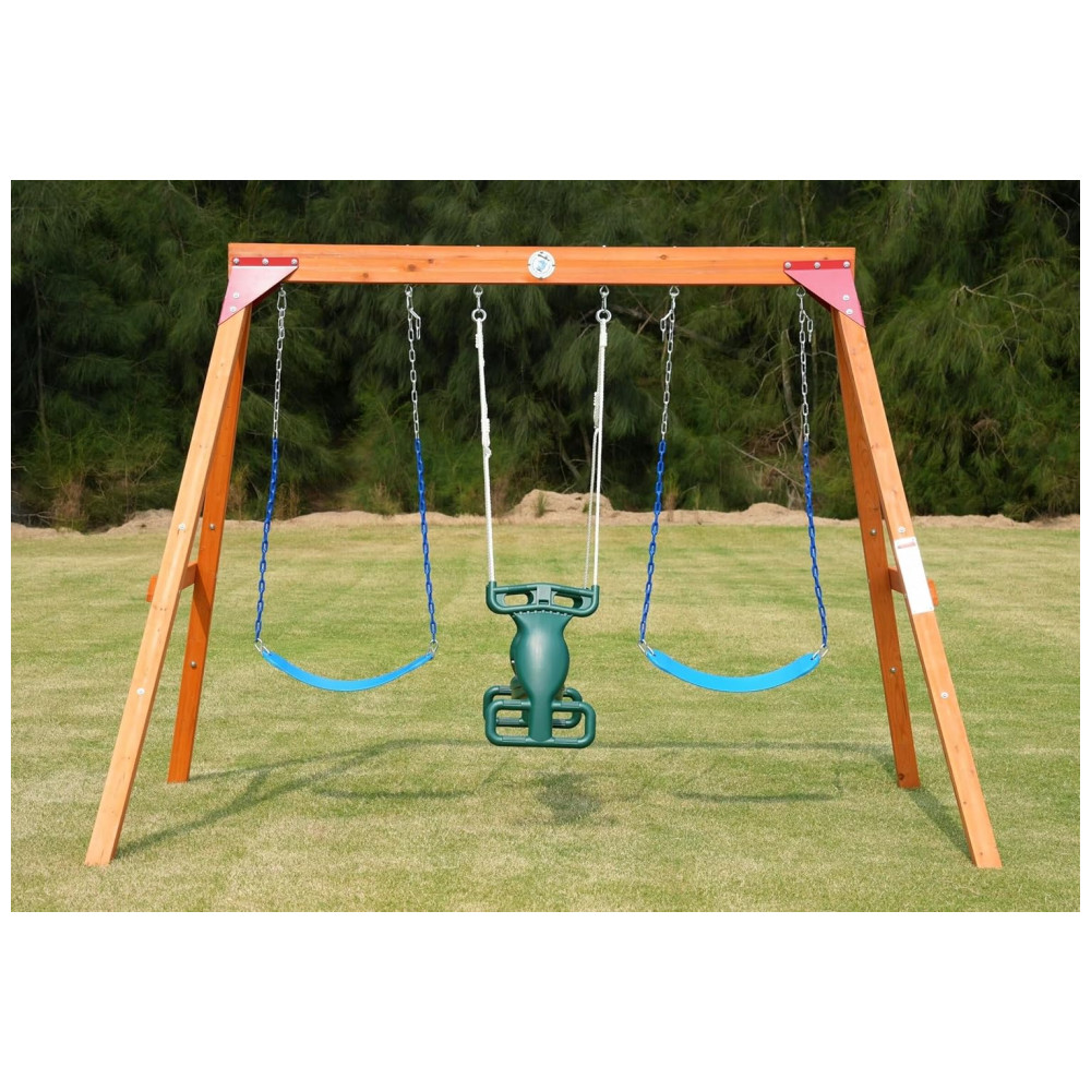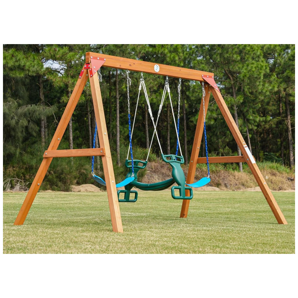 Conjunto de Balanços para Playground Dolphin Playground T Madeira Cedro Estrutura Triangular Estável 2 Balanços de Cinto + 1 Balanço Deslizante Capacidade 200 kg