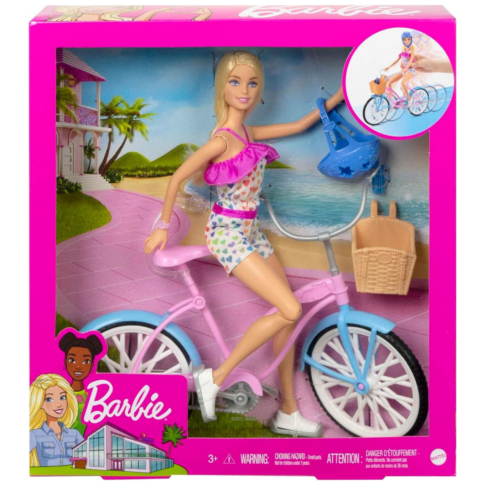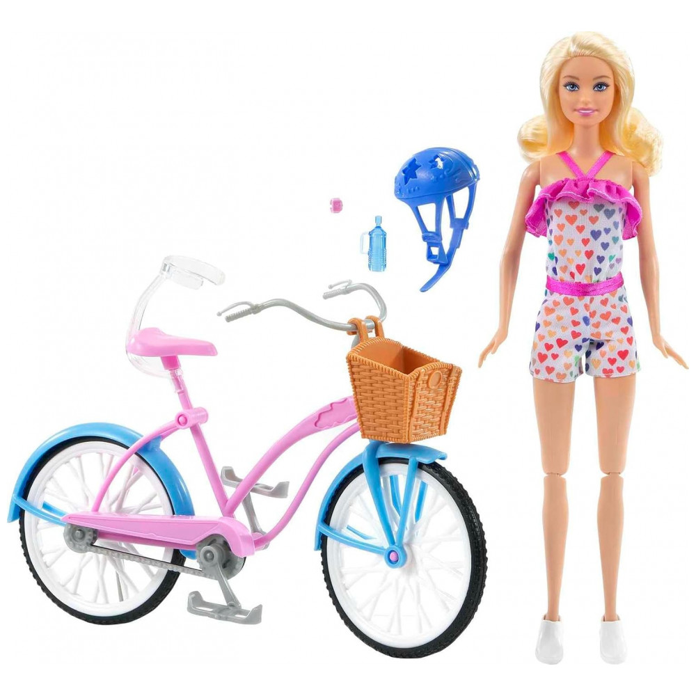 Conjunto de Bicicleta para Boneca Barbie com Acessórios e Boneca Rosa